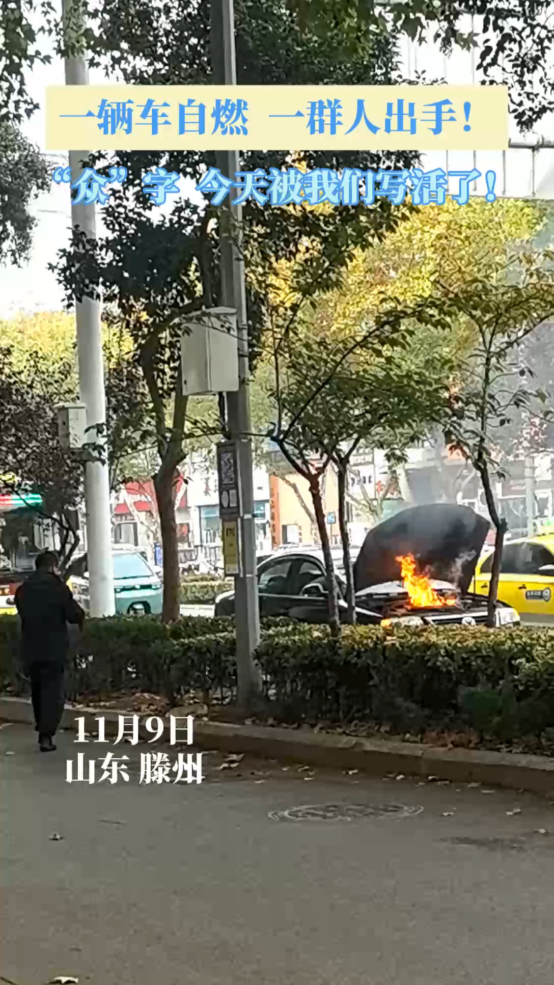 一辆车自燃 一群人出手!“众”字 今天被我们写活了!