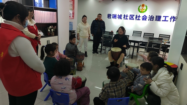 为丰富孩子们的寒假生活,挖掘辖区内儿童的艺术潜能和学习、娱乐多元化发展需求,近日,北辛街道君瑞城社区新时代文明实践站开展“全民鼓舞·幸福飞扬”——非洲鼓新春亲子活动,体验来自非洲神秘而特殊的民族风情,通过音乐的力量,激发亲子间的潜能,让他们在愉悦的氛围中感受音乐的魅力,并进一步提升自信心与团队协作能力。