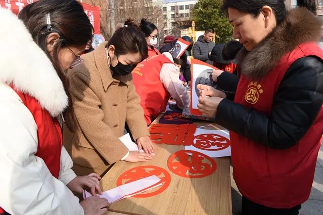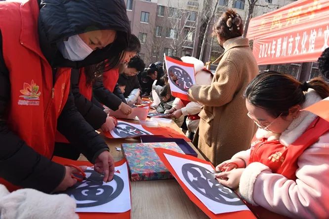活动现场,邀请了市文化馆老师向大家介绍了剪纸的历史、剪纸用途和剪纸意义等,并一边进行示范,一边讲解剪纸的基本技巧及注意事项,小朋友们也在家长和志愿者的帮助下,将纸张折叠、裁剪,随着“咔擦咔擦”的剪纸声,寓意美好、造型讲究的“福”字在大家的巧手下活灵活现地展现出来,大家互相交流、分享,现场热闹非凡,让大家提前感受到了新春佳节的欢乐气氛。