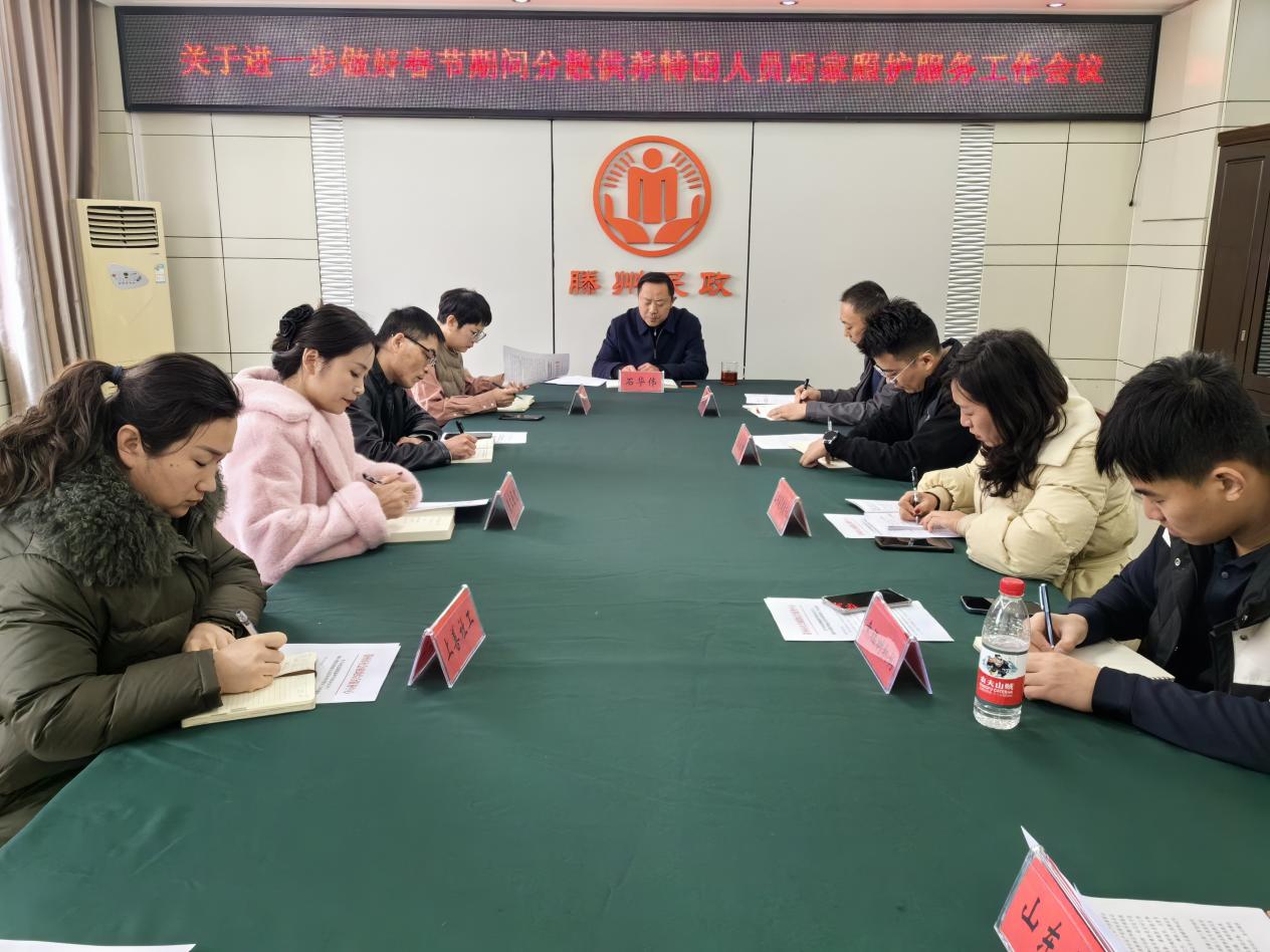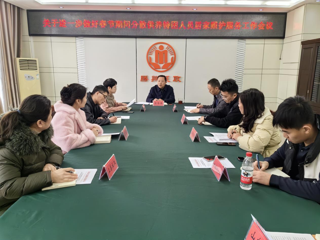 1月31日上午,应对近期低温雨雪灾害天气进一步做好春节期间分散供养特困人员照护服务工作会议在民政局三楼会议室召开。市社会救助综合服务中心主任石华伟,民政工业公司经理朱浩宇,相关业务科室工作人员及5家分散供养特困人员承接机构负责人参加会议。石华伟主任主持会议并作安排部署。