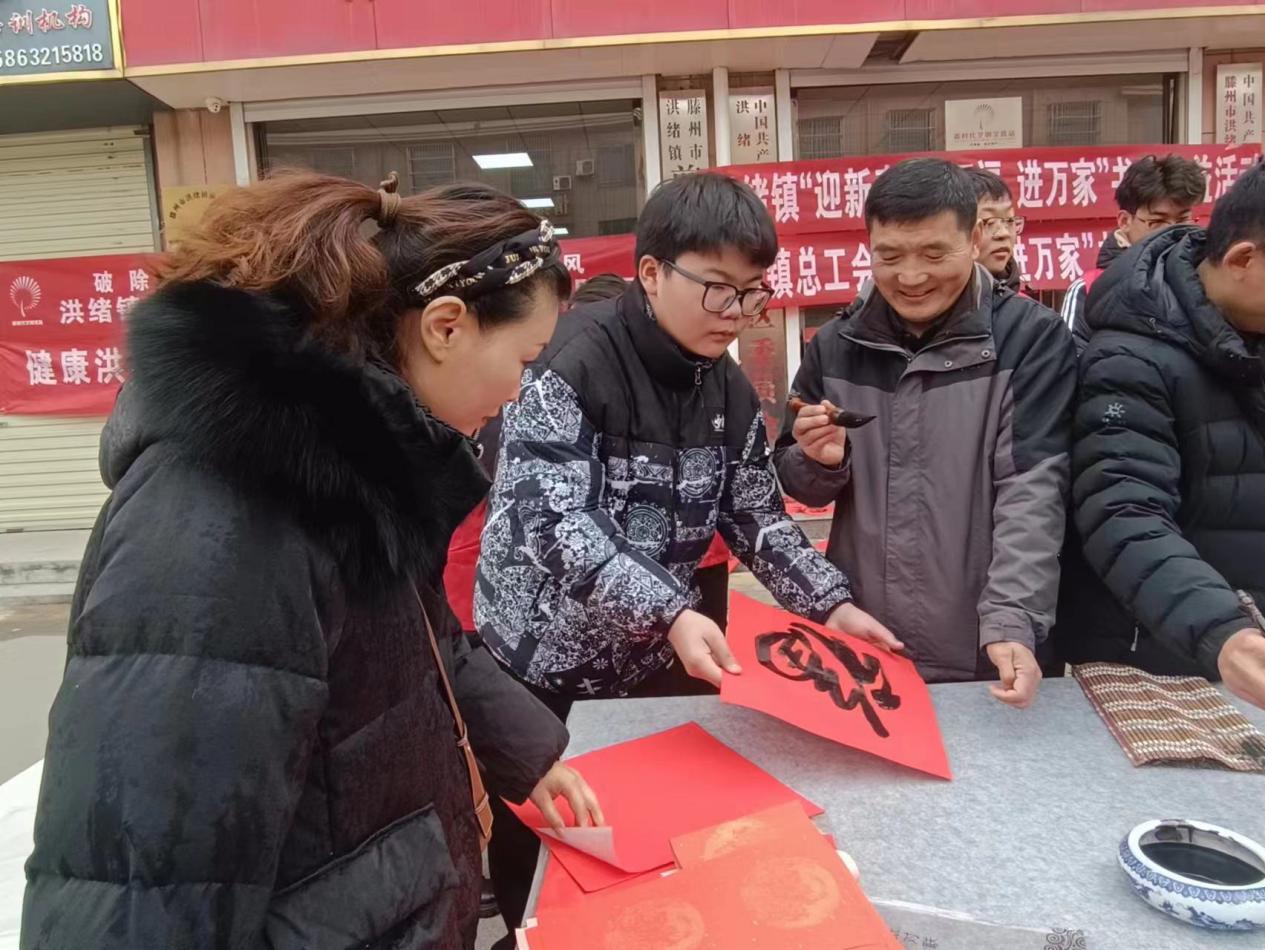 玉兔辞旧岁,金龙迎春来。在龙年春节即将来临之际,为弘扬优秀传统文化,丰富群众精神文化生活,营造喜庆祥和的节日氛围,把新春祝福送到千家万户,1月31日,洪绪镇开展“迎新春 送万福 进万家 ”书法公益活动,邀请洪绪镇书画家及书画爱好者为村民写春联、送福字,以艺术的形式送上新年的问候和美好的祝福。