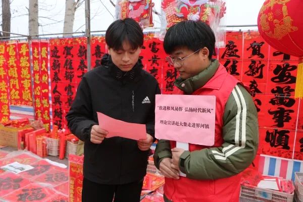 在赵辛街大集上,群众络绎不绝,人头攒动。青年志愿者们向过往群众发放《推进移风易俗 弘扬时代新风》倡议书,用通俗易懂的语言宣讲移风易俗“四倡四禁”等方面内容,号召大家杜绝浪费、涵育家风、遵守公德,倡导喜事新办、丧事简办、余事不办,引导群众“移”出新风尚,“易”出新生活,树立婚事新办、厚养薄葬、勤俭节约、文明理事的观念,争做移风易俗的积极倡导者和自觉践行者,也进一步激发全社会向上向善的正能量。