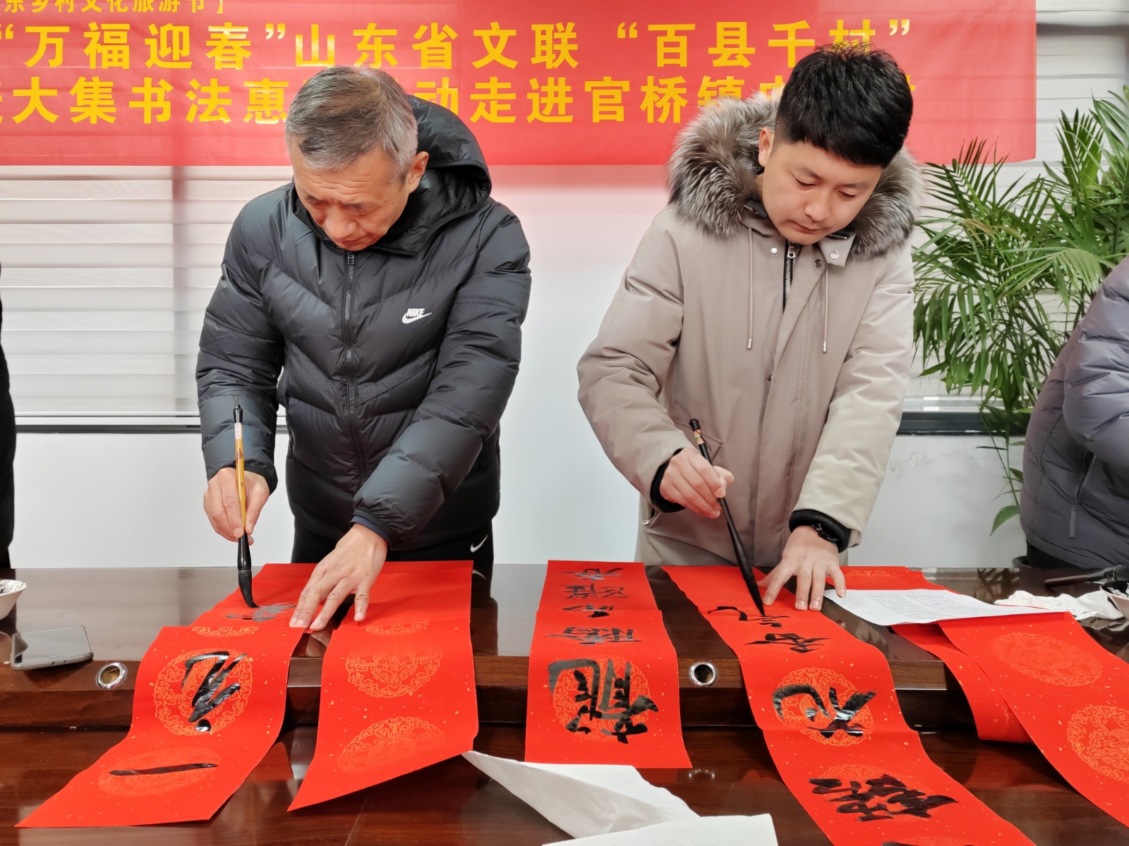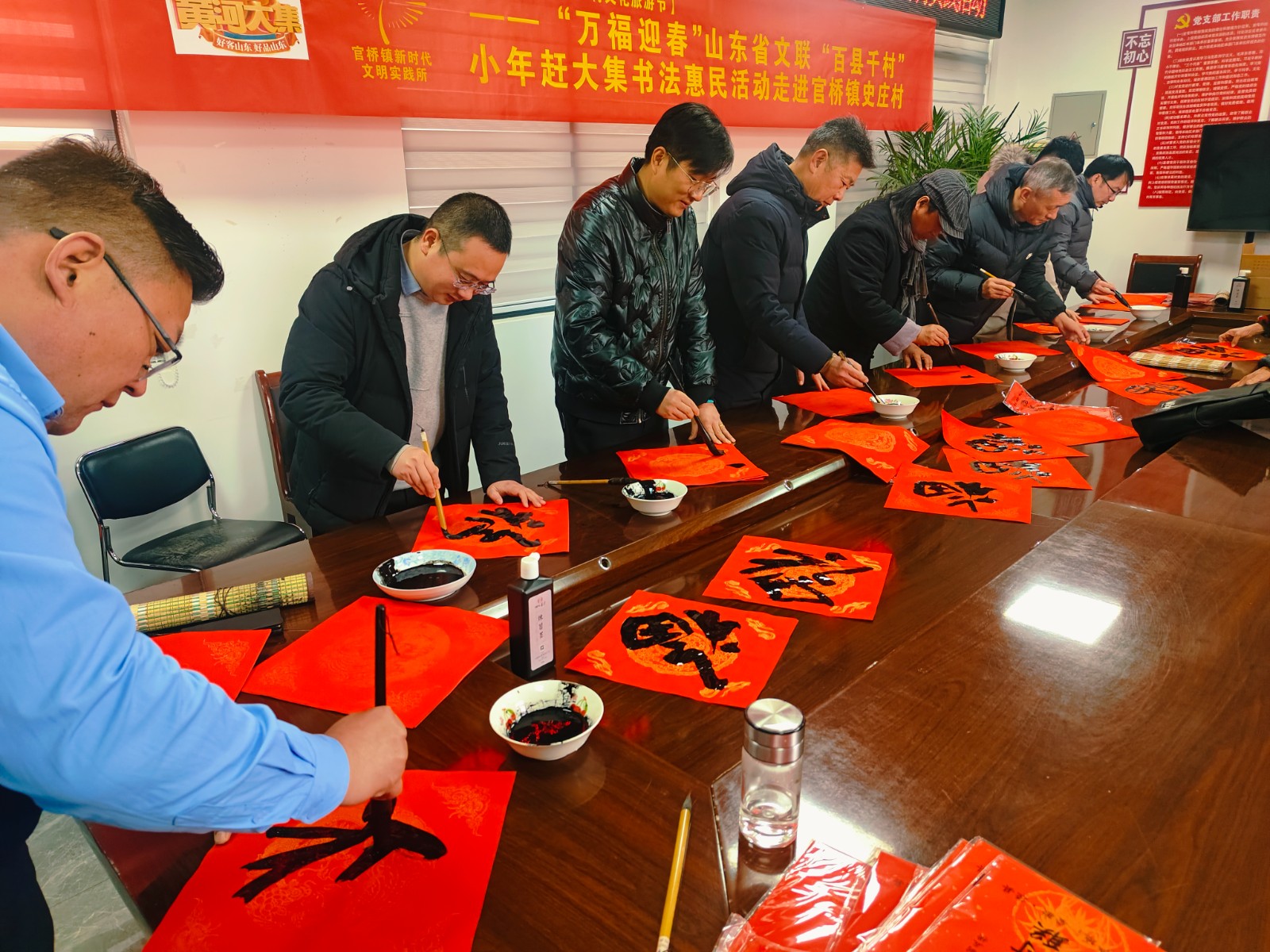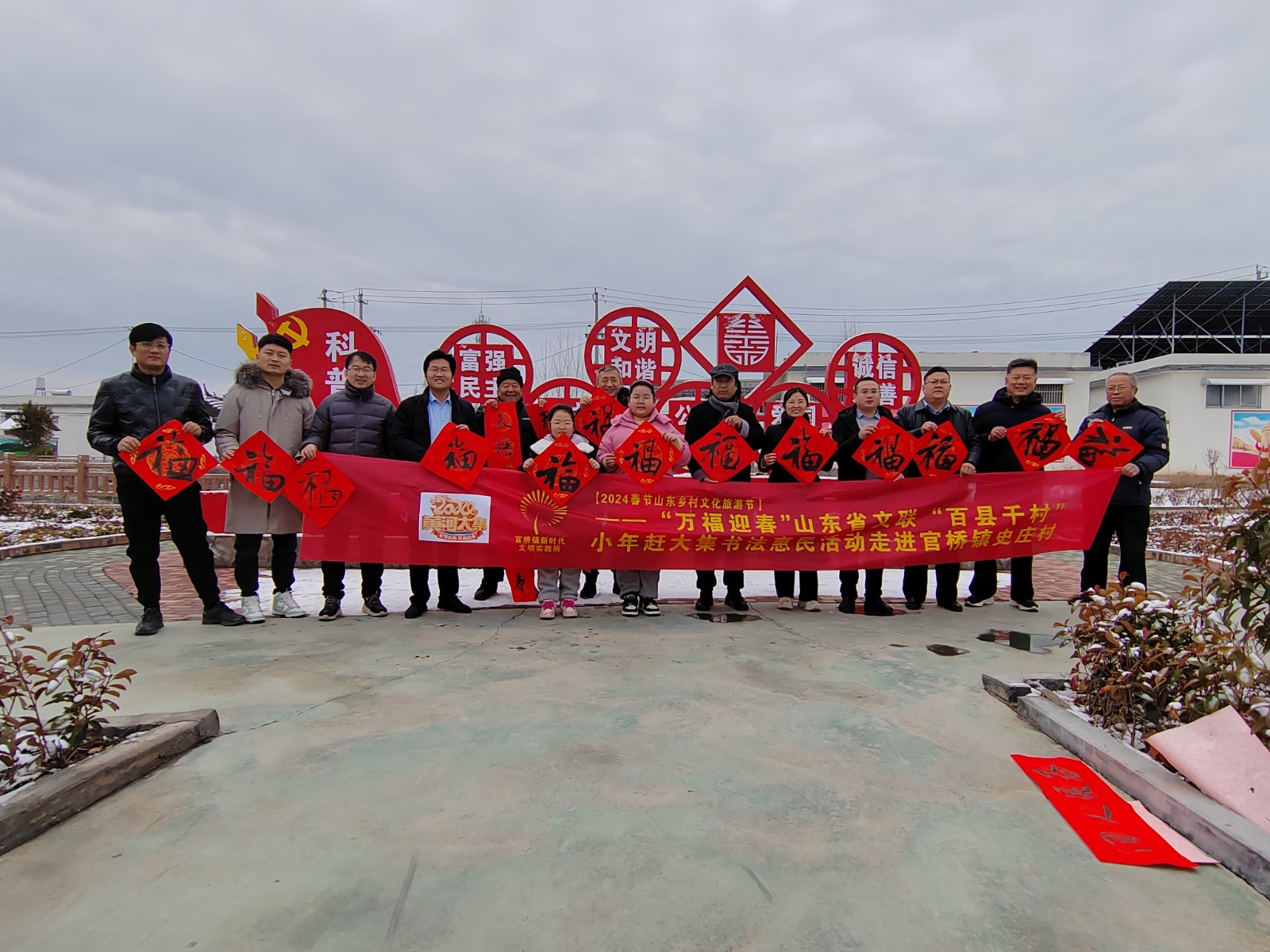 为汇聚文化力量,让文化惠民政策深入基层,弘扬传统文化,让更多乡村群众享受文化“福利”,2月2日,2024春节山东乡村文化旅游节——“万福迎春”山东省文联“百县千村”书法惠民活动走进官桥镇史庄村。