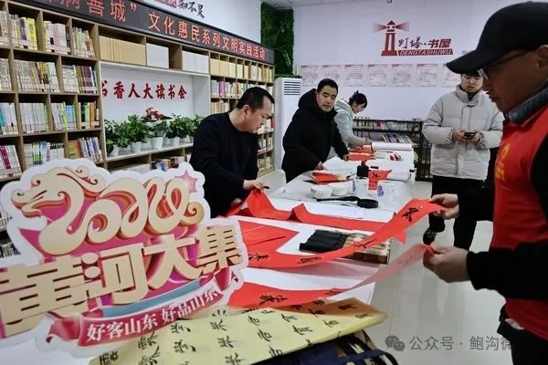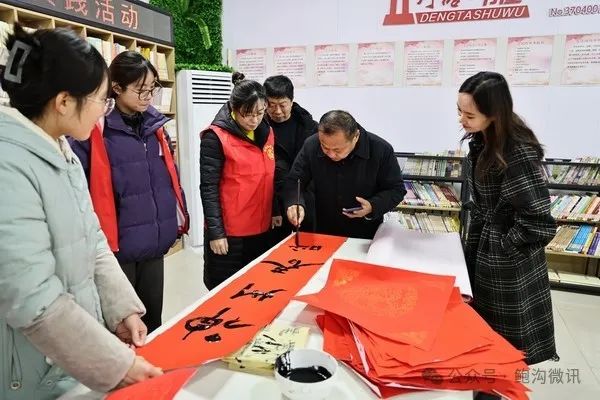 春节将至,年味渐浓。1月26日,鲍沟镇文化站、团委、妇联、人大办、工会等单位联合组织开展“书香鲍沟 福满善城”文化惠民送春联活动,活动特邀全镇青年书法志愿者及鲍沟籍书画爱好者现场为家乡父老写送春联,为村民群众送来了温馨的节日礼物和美好的新年祝福。