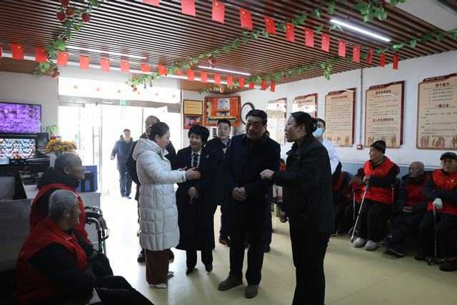 在滕州市第一敬老院,姜繁茂一行详细了解机构运营状况、入住老年人生活、饮食及医疗护理等情况,询问了老人们的日常生活和健康情况,送上了米、面、油等物资和新春的祝福。同时嘱托敬老院工作人员要进一步提高老人的生活质量和服务水平,让每位老人从内心感受到关心关爱,度过一个愉快、祥和的春节。