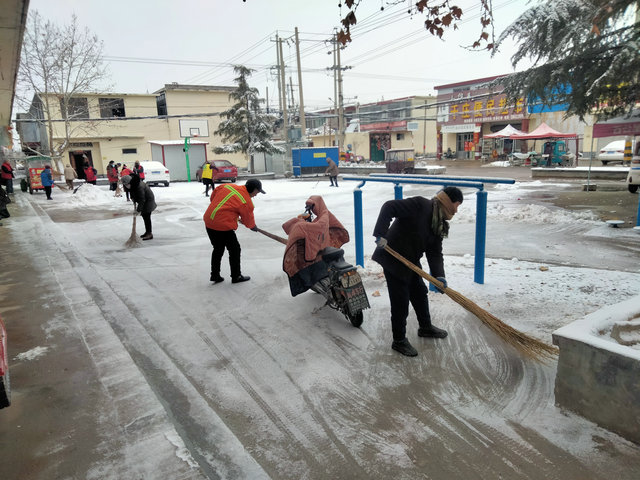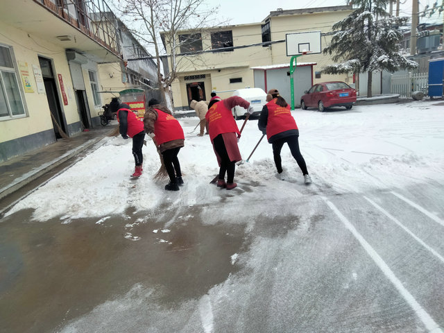 大家不畏严寒,提前到岗,手持铁锹、扫帚等工具,清扫着街道、村居主要道路上的积雪。在寒冷的室外,尽管手和脸都被冻得通红,但大家干劲十足。经过大家的合力清扫,成功为居民清扫出一条“绿色出行通道”,切实为群众出行安全保驾护航。