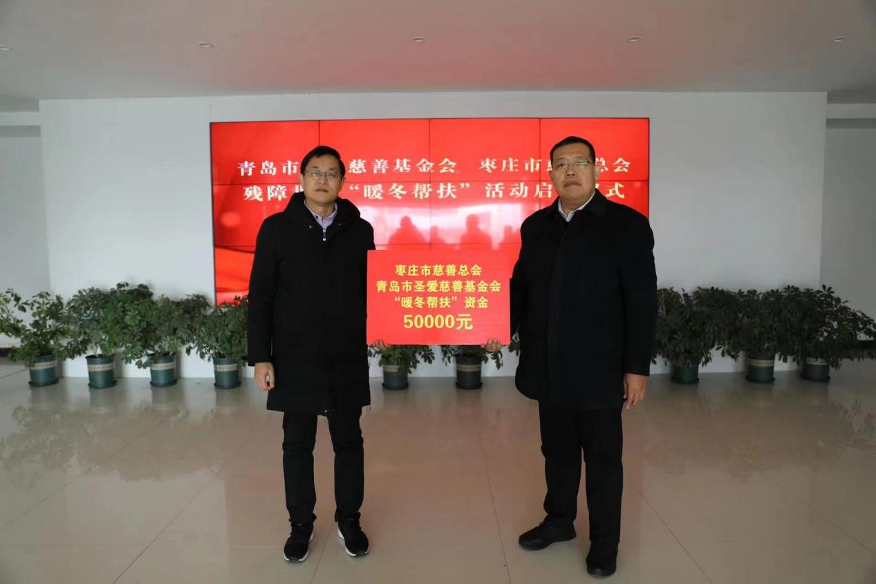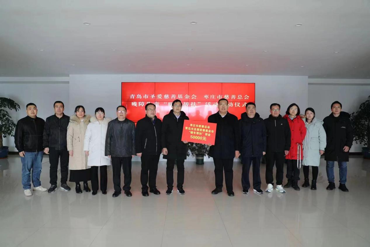 2月6日,青岛市圣爱慈善基金会、枣庄市慈善总会经济困难残障儿童“暖冬帮扶资金”捐赠仪式在滕州市民政局举行。枣庄市民政事务服务中心副主任王平 ,滕州市民政局党组书记、局长、市慈善总会常务副会长翟华栋,滕州市慈善总会办公室主任孙德浩,滕州市慈善总会办公室副主任马昭浩等参加仪式。