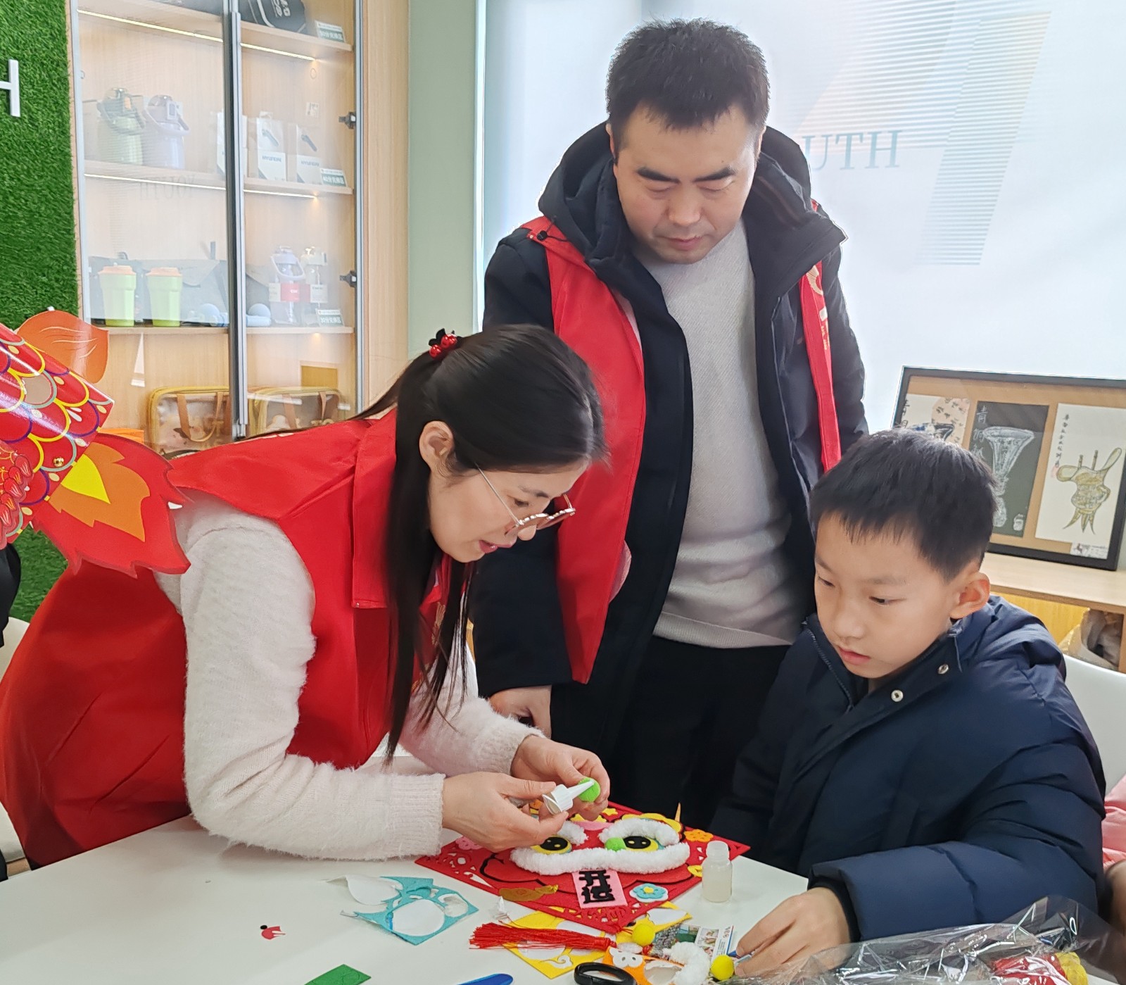 活动开始,志愿者先为孩子们介绍了春节的传统习俗,以及灯笼的发展历史。随后,志愿者为大家发放了制作灯笼的材料,带领大家学习了灯笼制作流程和制作方法。孩子们在志愿者和家长的帮助下、在自己的摸索中,一步步进行制作,经过拼接画框、装彩灯、系红绳、粘贴图案等环节,一盏盏漂亮的龙灯便制作完成。孩子们兴奋地提着灯笼展示自己的成果,脸上洋溢着幸福的笑容,充满了成就感。