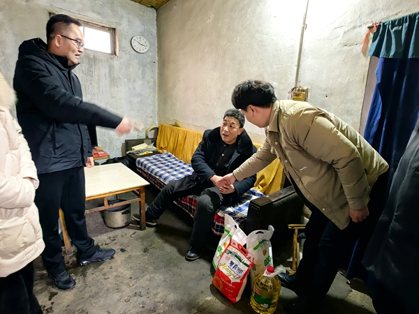 张明一行来到姜屯镇黄坡村,看望市派第一书记并调研帮包工作,听取市派第一书记汇报具体情况,并对下一步开展好帮包工作作出了指导。随后,入户走访慰问困难群众,详细询问他们近期生活情况,了解他们目前存在的困难和需要的帮助,鼓励他们坚定生活信心,努力克服困难,照顾好自己的生活。同时为他们送去米、油、面等生活物品以及慰问金,并将真诚而温暖的新年祝福送到困难群众家中。
