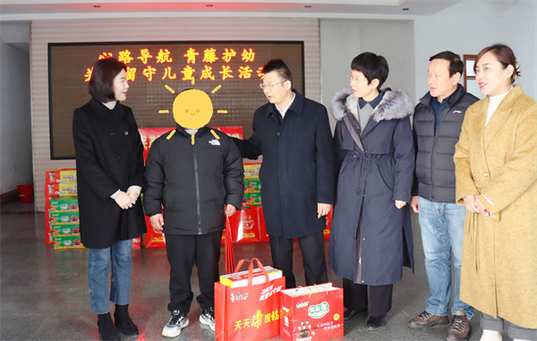随后,周学文一行现场为留守儿童代表捐赠爱心物资,详细询问他们的学习及生活情况,并勉励他们志存高远、自强不息,勇于面对人生道路上的一切困难和挑战,不向困难低头,不被挫折压倒,在磨炼中成长,在逆境中奋起,通过自己的不懈努力改变人生命运。