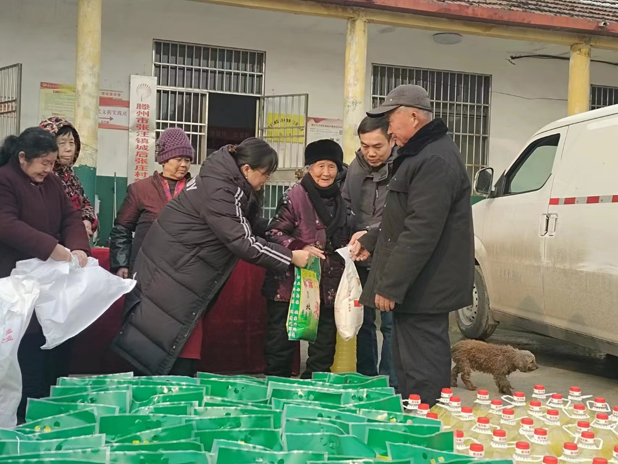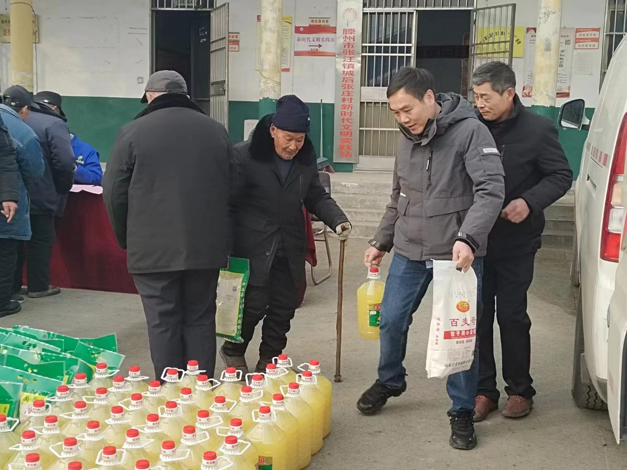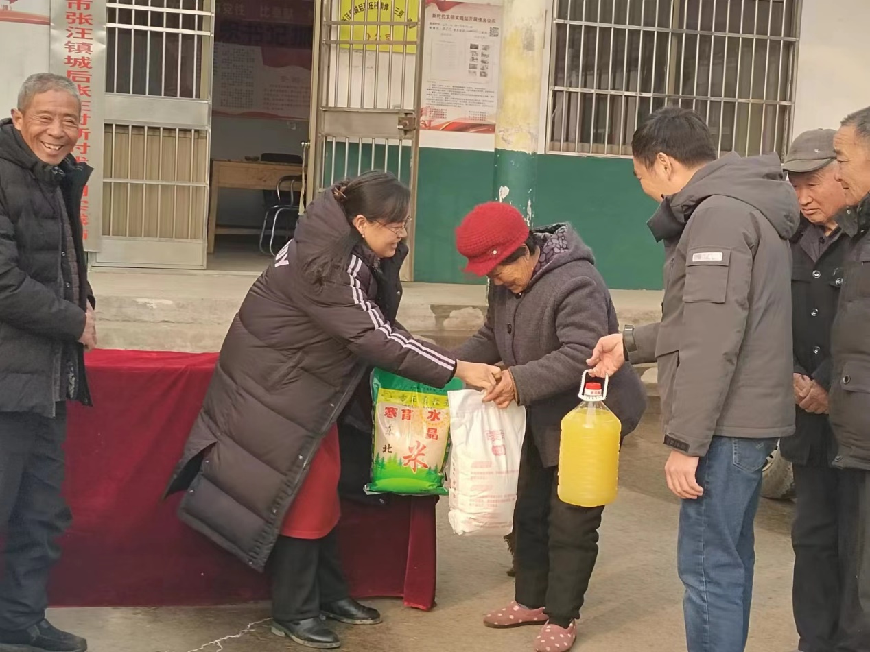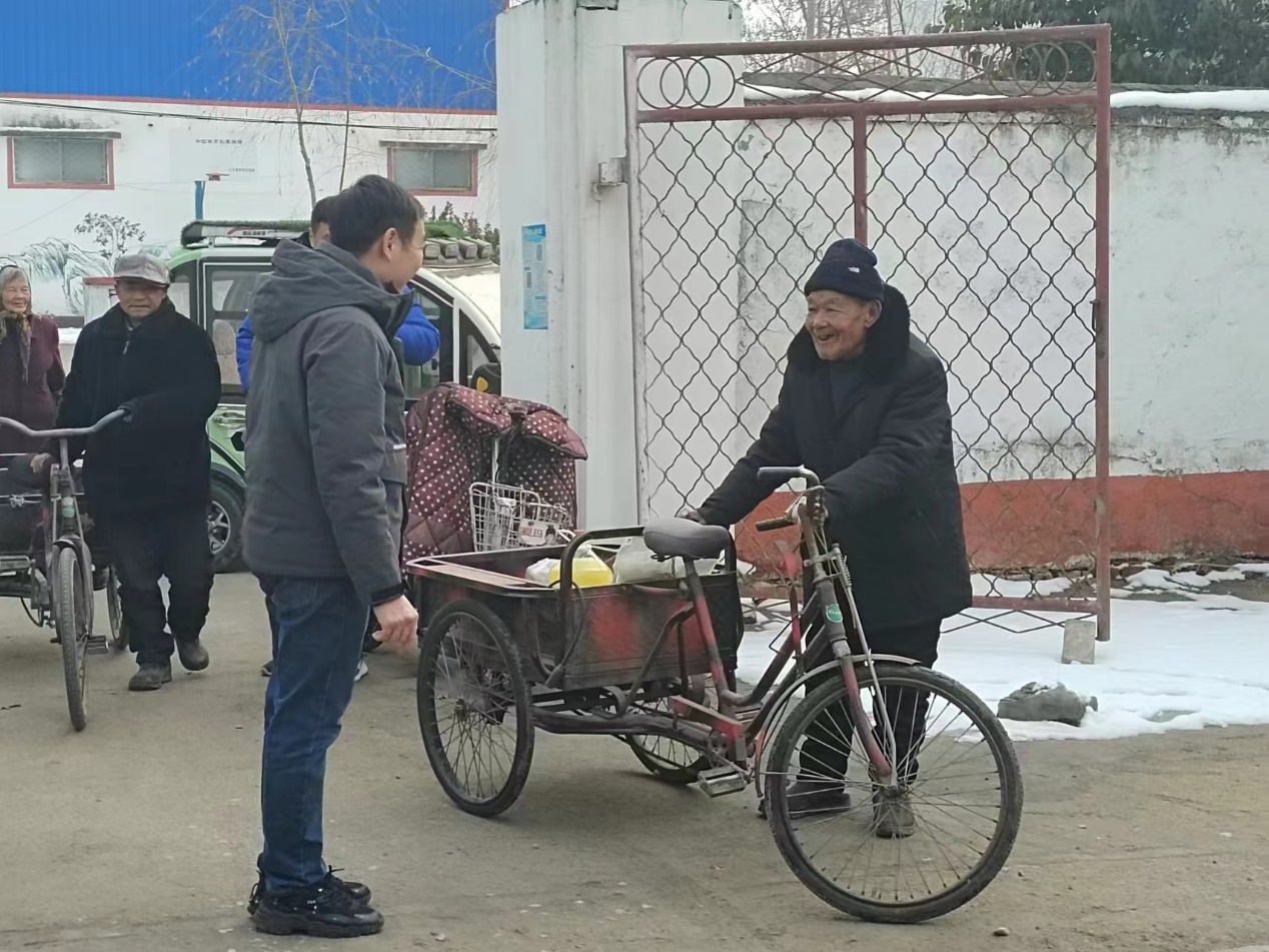 张运伟经理在与老年人亲切交谈后,为他们送上大米、食用油和面粉。沉甸甸的慰问品里包含着满满的心意,在冬日为老年人送上新春的暖意和希望。
