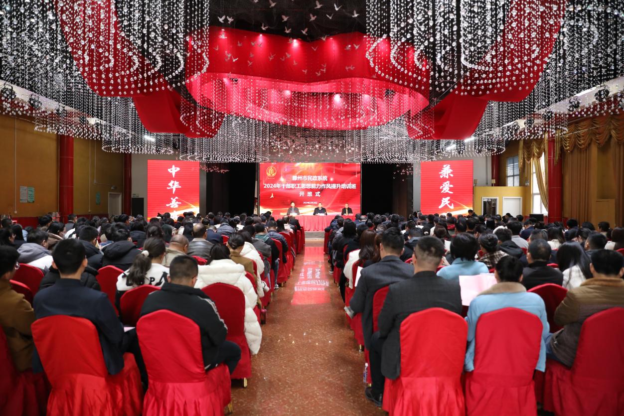 为进一步加强民政系统干部队伍素质建设,大力弘扬崇真务实的作风,锻造一支忠诚干净担当的民政干部队伍,开创2024民政工作新局面,2月18日,滕州市民政系统干部职工思想能力作风提升活动在滕州市盈泰生态园正式开班。开班式由局党组成员、副局长杨勇主持,局党组书记、局长翟华栋作开班动员讲话,各镇街分管镇长(主任)以及民政科科长、副科长,局机关各科室(单位)、局属各事业中心全体人员、分配到镇街的两名社区工作者、滕州市各养老机构负责人参加培训。