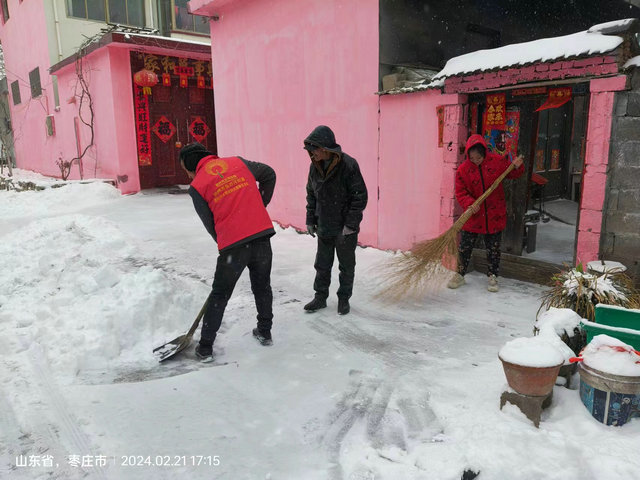 因村居独居老人和困难老人,因年老体弱,无法清理院内和门口积雪,为保障留守老人生活不受影响,堌堆社区志愿者为独居老人门前铲雪,保障老人出行安全。
