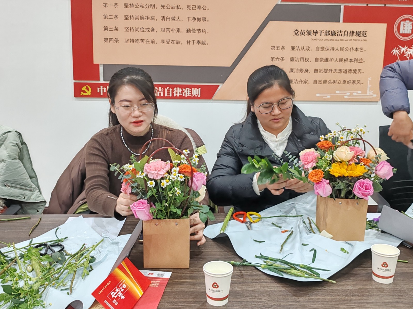 为丰富群众精神文化生活,在“三八”国际妇女节来临之际,近日,官桥镇新时代文明实践所联合滕州农商银行官桥镇支行,开展了“德润巾帼 金融赋能”插花活动。