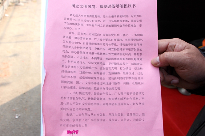 宣传中,网格员向群众重点讲解了抵制婚嫁恶俗、抵制高价彩礼,不是反对传统婚姻观念,而是倡导健康、文明、简约的婚俗文化,并号召适婚青年自觉抵制高价彩礼,从自身做起,反对大操大办,不讲排场不攀比,厉行节约不铺张,大力弘扬勤俭持家好家风,以实际行动营造健康向上的良好社会风尚。