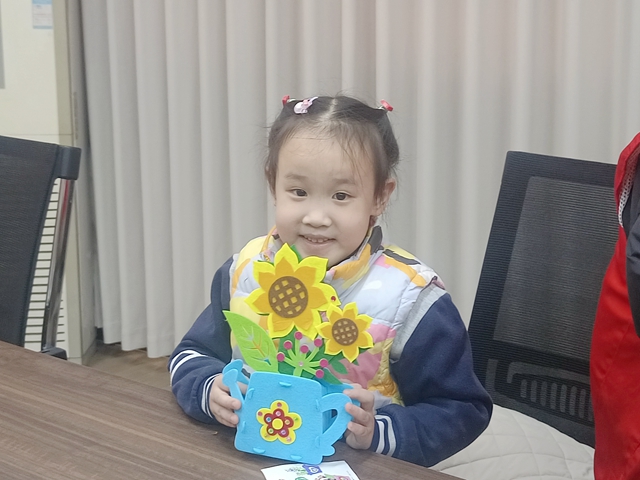 活动开始,志愿者老师首先展示了自己制作的成品,并逐一发给孩子们制作的材料包,讲解了手工制作的具体步骤,然后家长和孩子们在志愿者老师的指导下进行手工制作。经过一个多小时的努力,一个个精美的手工作品就完成了。孩子们看着自己亲手制作的玩具,既开心又自豪,大家互相展示欣赏作品。孩子们在互相帮助中逐渐体会到了DIY的乐趣,大家看到孩子们如此开心,脸上也洋溢着欣慰和幸福。