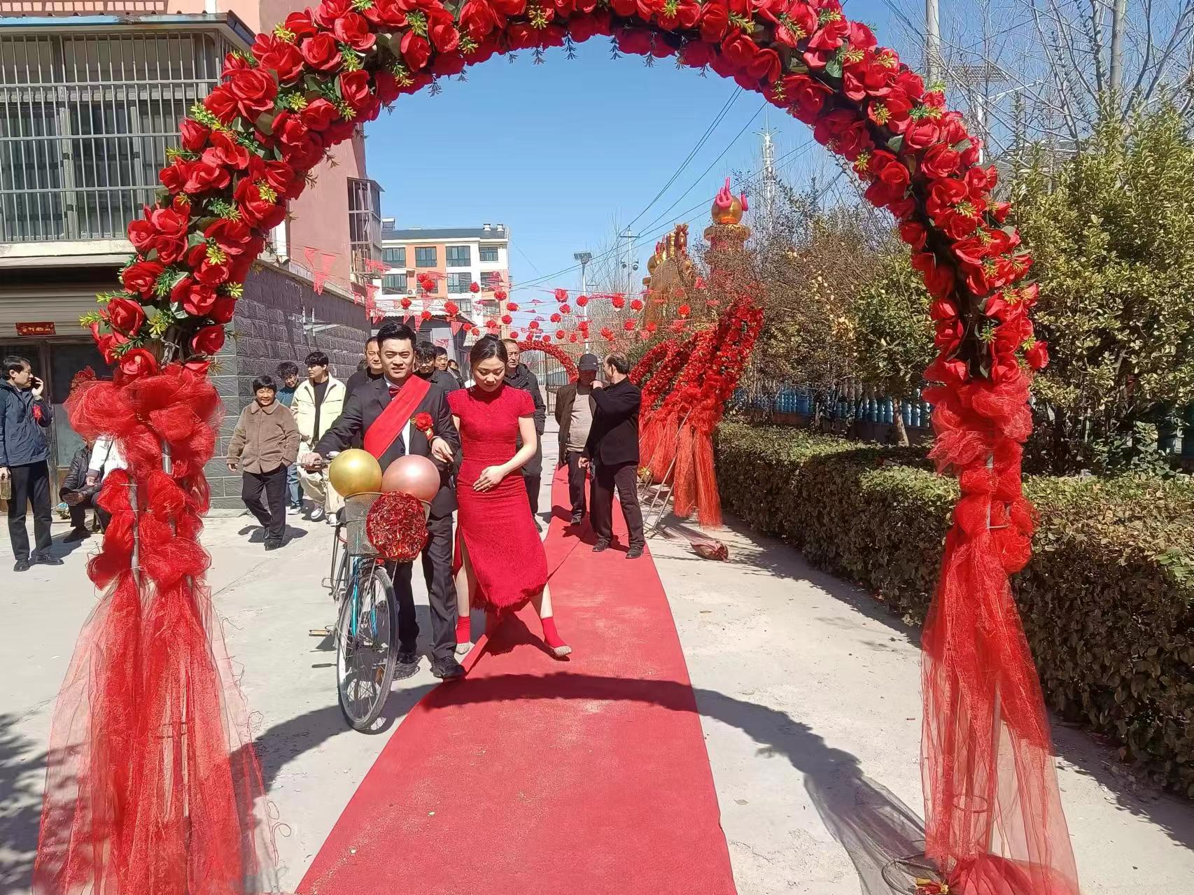 婚礼上,新郎用“朴素时尚”的自行车迎娶自己的新娘,“简约隆重”的婚礼现场,充满着新人们的温情与浪漫。