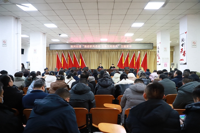 做好顶层设计,为“文明新风”塑形。为了推进移风易俗工作扎实开展,荆河街道推进移风易俗工作领导小组多次召开推进会,建立健全制度;常态化开展移风易俗宣传进机关、进社区、进校园活动,不断夯实群众思想基础;通过树立典型引领作用进一步扩大工作实效,有效推动人居环境不断改善,丰富群众文化生活,乡风文明程度显著提升。