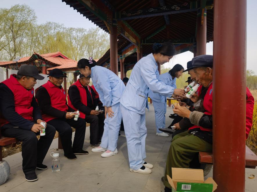 阳春三月,七星湖湿地公园景区内百花争艳,美不胜收;湖面微风徐徐,水波荡漾。老人们目不暇接,纷纷感叹大自然的奇妙。游览结束,护工们为老人们准备了牛奶和点心,坐在一起和老人们聊聊家常,亲如一家,画面温馨暖人。本次活动共有16位老人参加,同时配备3名志愿者,3名社工,1名随行医生,强大的陪护队伍为老人的春游提供了安全保障。