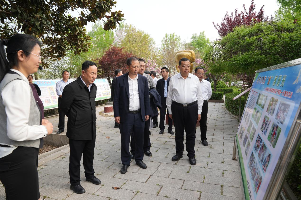 在鲍沟镇东皇甫村实地考察“救助政策一条街”,观看展区详细了解“中华善城·兼爱民政”引领下的扶危济困文化内涵及救助政策、程序,提出要多种形式大力宣传社会救助措施,提高社会知晓率;