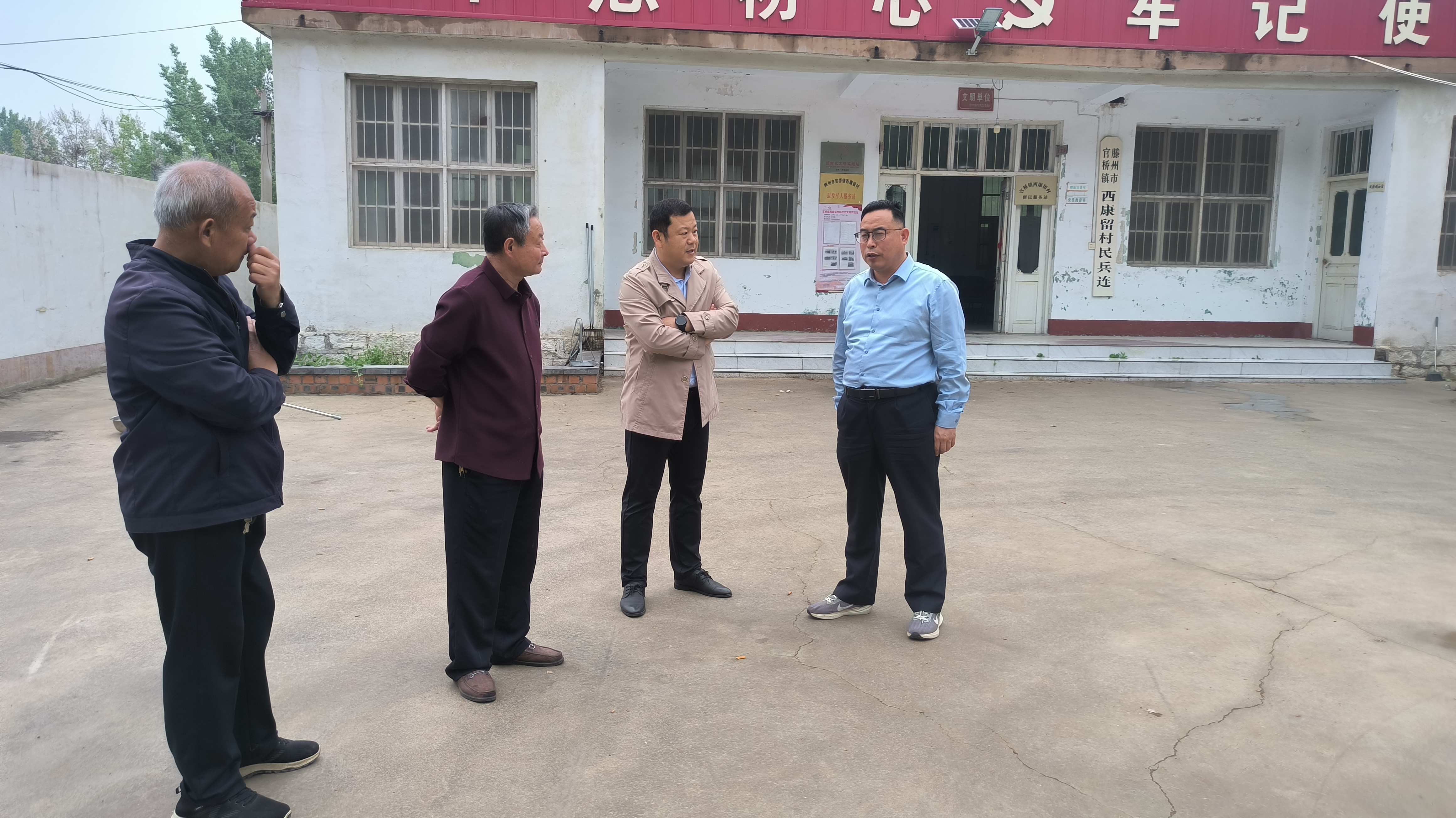 4月23日上午,市民政局养老服务指导中心主任杜建伟一行来官桥镇实地督导查看“幸福食堂”选址建设情况,官桥镇民政科长陈震陪同。