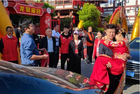 这个“五一”期间的婚礼被龙泉街道文明迎亲队承包了。“五一”小长假,迎来婚礼“黄金周”,各片区文明迎亲队第一时间落实婚礼跟踪随访、动态管理,组织工作人员、志愿者到各酒店的婚礼现场,向新人及其亲友开展移风易俗宣传工作,引导广大群众婚事新办、婚事简办。文明迎亲队身着红马甲,为文明婚礼保驾护航,为新人送去祝福,成为一道靓丽的风景线。在阵阵电子鞭炮声中,新郎牵着新娘的手,在亲朋好友的簇拥下,“轻轻松松”就将新娘娶回了家。目前街道各社区(村)均成立了文明迎亲队,同时根据各自实际,对婚宴的规模、标准及礼金上限等事项进行了规定,并纳入了村(居)规民约。从劝说群众文明迎亲,到群众主动要求文明迎亲队到场,从一户到一片,从一片再到整个街道,文明嫁娶之风正以“润物细无声”之势在龙泉浸润开来。