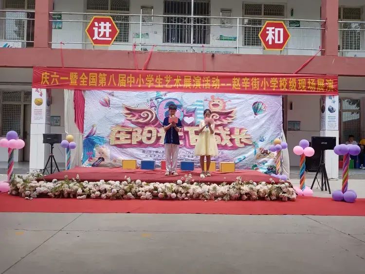 “六一六一,大地穿上花衣,小朋友们手拉手,庆祝自己的节日……”伴随着嘹亮活泼的歌声,滕州市界河镇赵辛街小学“全国第八届小学生艺术展演活动一一赵辛街小学现场展演”庆祝六一儿童节活动拉开了序幕!