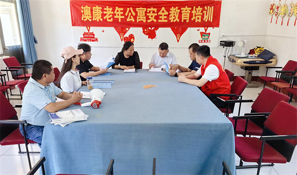 为进一步加强养老机构安全管理,增强工作人员和老人的安全意识,6月20日,羊庄镇到澳康老年公寓开展安全生产检查暨消防培训演练活动。副镇长孙晓琳、社会事务管理办公室副主任吴培营,民政科、应急办及相关党总支负责同志参加活动。