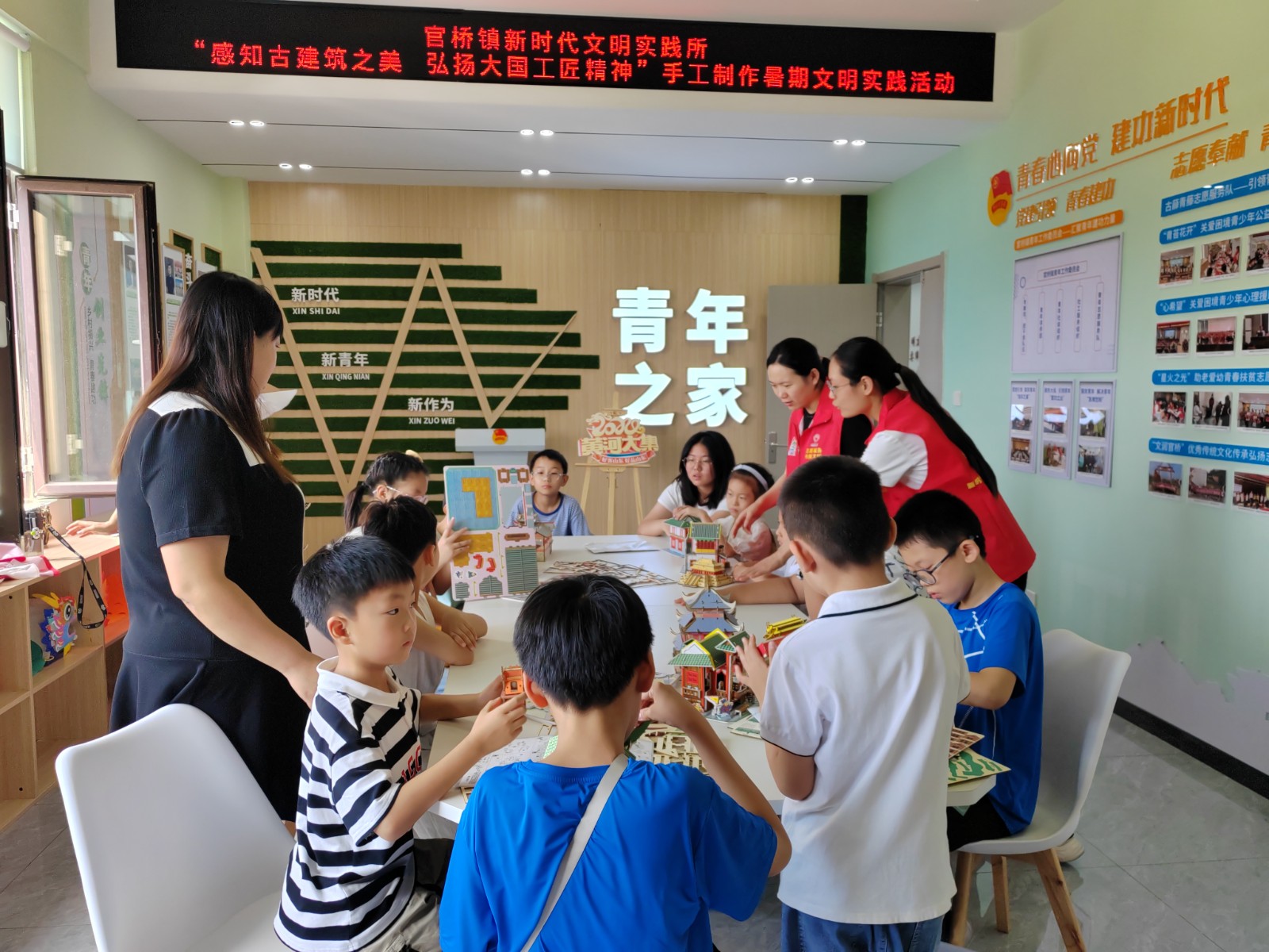 中国的美,无处不在,在雕梁画栋、恢弘大气的建筑,在曲折幽深、素净淡雅的园林,在青砖灰瓦、雕刻精美的民宅。7月2日上午,官桥镇新时代文明实践所联合镇团委、妇联、科协、文旅体办开展了“感知古建筑之美 弘扬大国工匠精神”手工制作暑期文明实践活动,让孩子们在活动中收获知识、增长见识、锻炼能力。