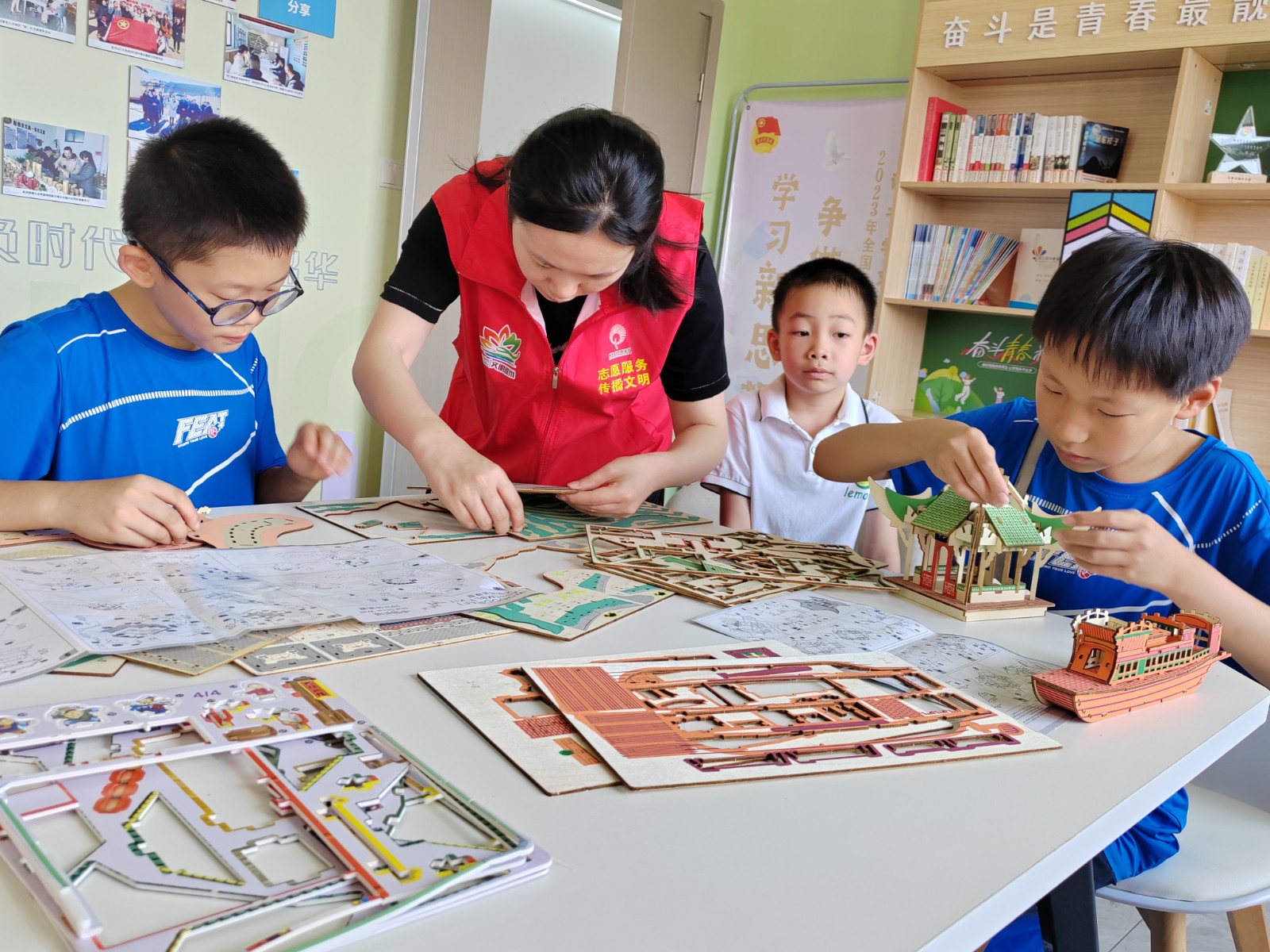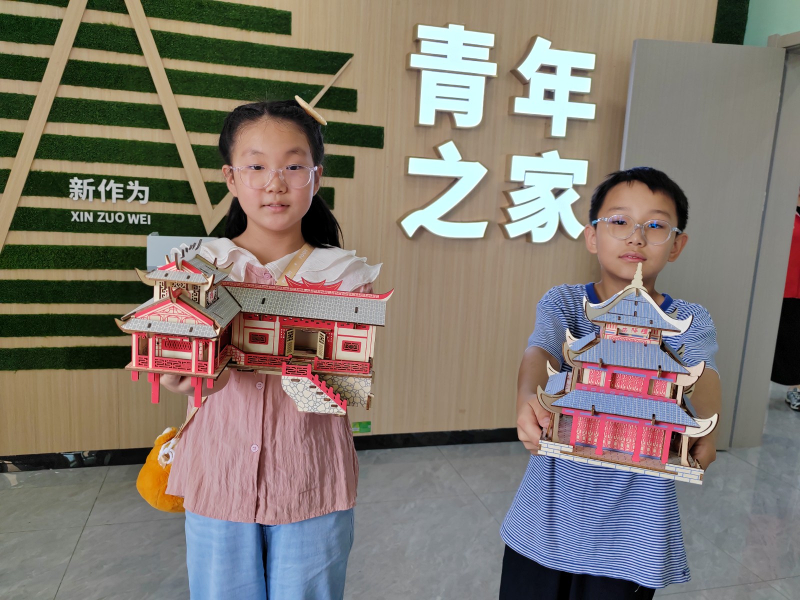 活动中,志愿者向青少年们讲解了中国传统建筑知识、科学解读了古代建筑蕴含的历史文化信息和古建筑艺术里蕴含的大国工匠精神,随后,向孩子们发放了古长城、太和殿、天安门、黄鹤楼、湘西吊脚楼、醉翁亭、福建客家土楼、江南徽派等中国传统古建筑模型,让孩子们在手工制作体验中感受古建筑繁复之美,深刻领悟中国古建筑中所蕴涵的劳动人民的伟大智慧和中国传统文化技艺的魅力,增强文化自信。