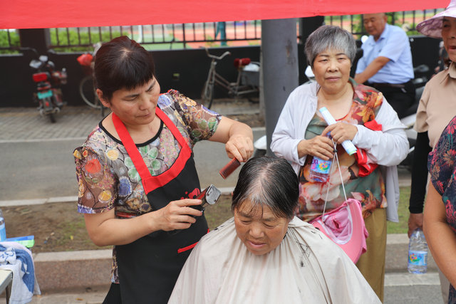 “这几天闷热,正想理理发,没想到在社区门口没花钱就给理了,剪得还不孬看……”爱心义剪区,几位理完发的老人们正乐呵呵地闲聊,几位技艺娴熟的理发师志愿者正耐心的询问居民们对发型的要求,现场气氛温馨和谐;医疗服务区,社区卫生服务中心的医生们正为居民量血压、血糖,解答健康疑问。