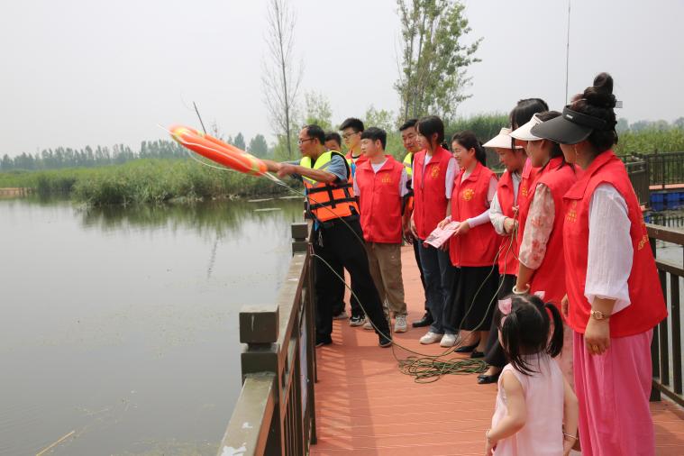 随后,志愿者在重点水域开展巡查,认真查看防溺水警示牌、救生杆、救生圈、救生绳等防溺水设施是否齐全,警示标牌是否破损,并及时对救生圈、救生绳、救生杆、松动的警示牌等进行加固和更新。