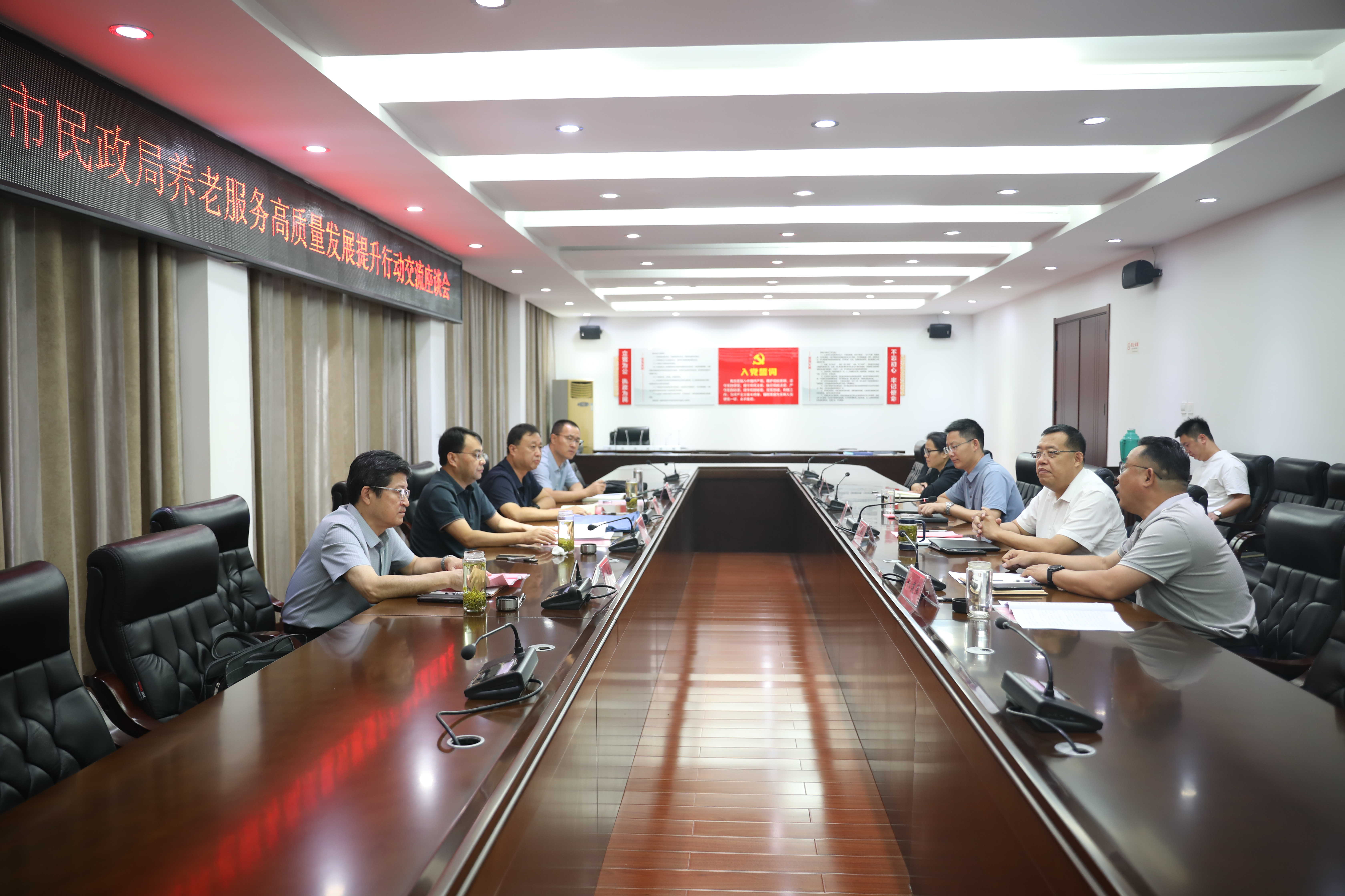 在市民政局召开的座谈会上,翟华栋介绍了我市养老工作情况,双方就相关工作进行交流。张天华一行随后到民政智慧平台、墨乡圣府养老服务中心、鲍沟镇东皇甫村幸福食堂、市养老综合服务中心、光大美铭•温泉康养小镇考察学习,同时,双方就爱心食堂建设、养老机构医养结合等工作进行了深入探讨。
