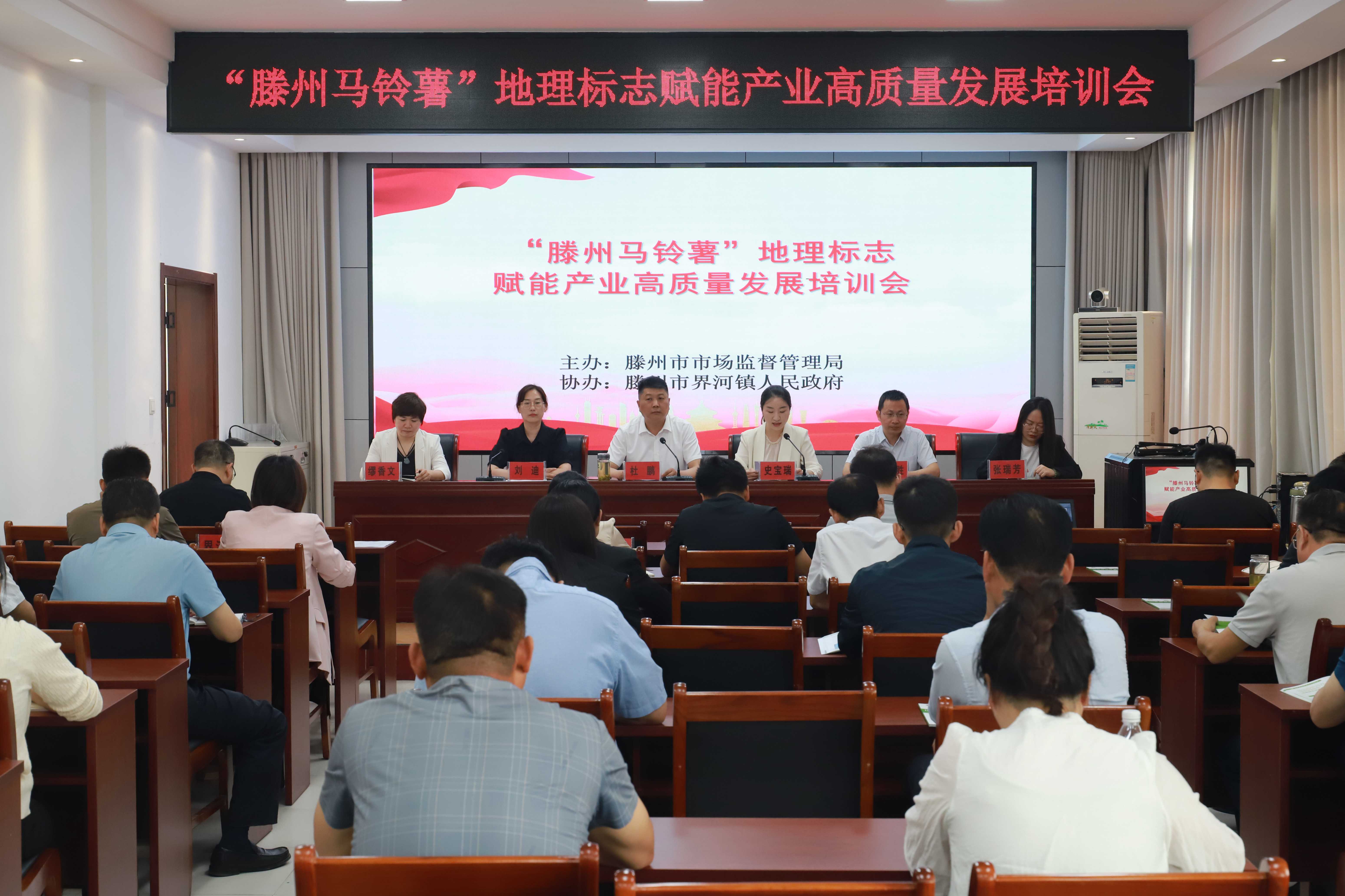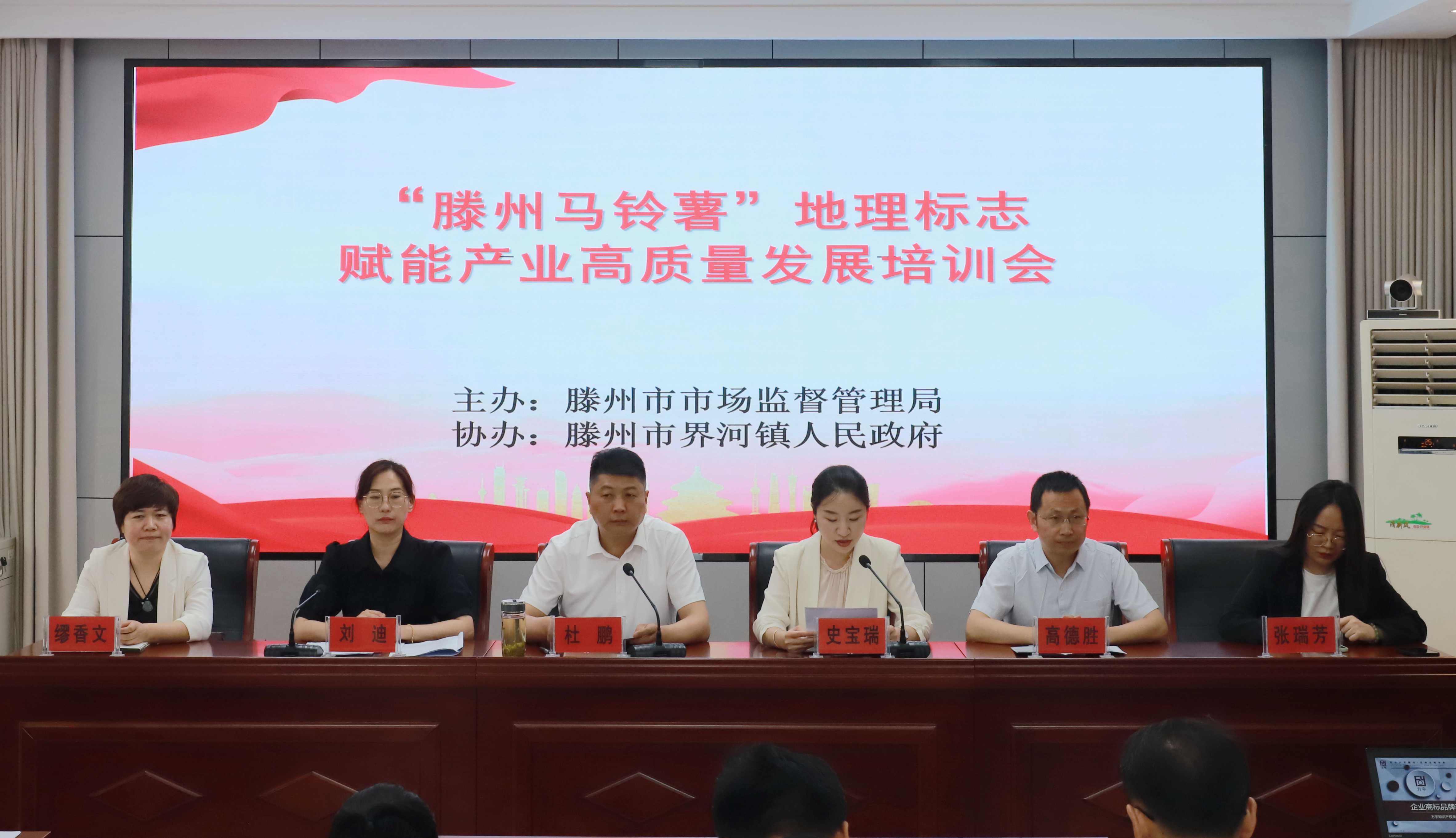 为进一步加强“滕州马铃薯”地理标志保护与运用,规范地理标志专用标志使用,提升全市地理标志保护水平,5月23日上午,“滕州马铃薯”地理标志赋能产业高质量发展培训会议在界河镇举办。界河镇党委副书记史宝瑞;界河镇、龙阳镇、姜屯镇、大坞镇分管领导;市农业局有关科室负责人;市市场监管局知识产权保护科全体人员;“滕州市马铃薯”地理标志专用标志使用及意向使用企业共计40余人参加培训会议。会议由市市场监管局党组成员杜鹏主持。