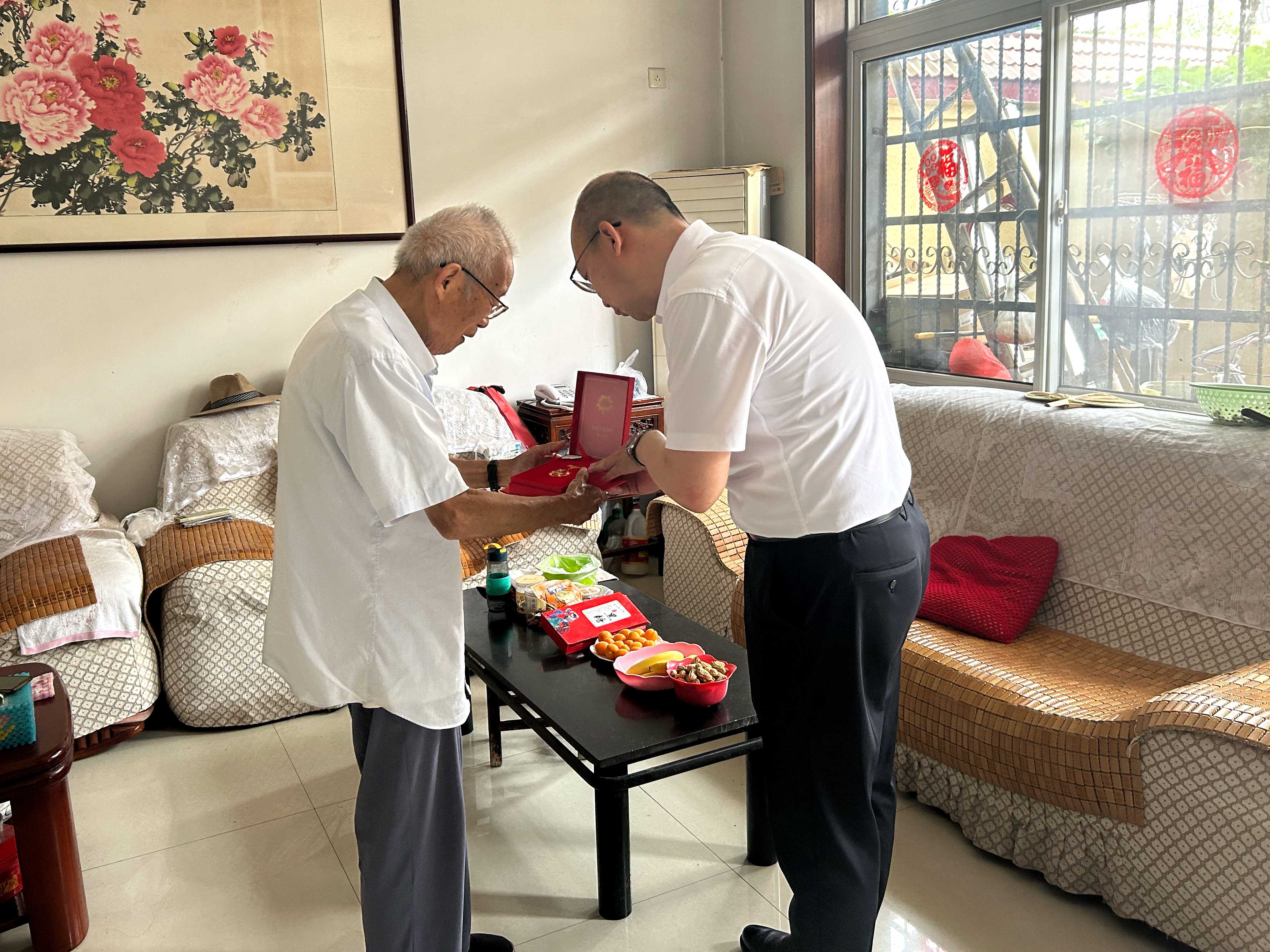 在“七一”建党节来临之际,为激励广大党员传承老一辈共产党员的光荣传统,坚定理想信念,凝聚奋斗力量,6月27日,市市场监管局党组成员、副局长刘伟带队走访慰问老党员,为老党员颁发“光荣在党50年”纪念章,并致以崇高的敬意。