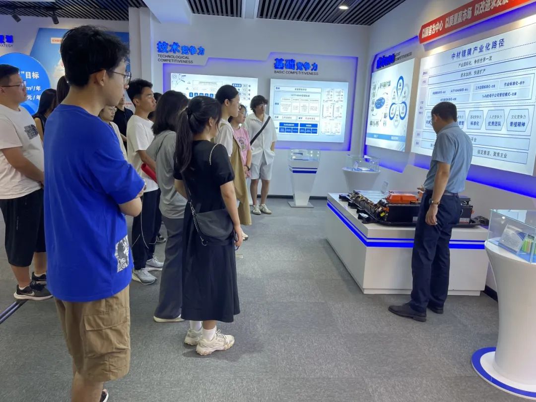在中材锂膜有限公司,学子们在企业负责人的介绍下,了解了企业智能化程度最高的锂电池隔膜工厂,智能加工设备以及恒温车间,在实地参观中感受家乡发展。