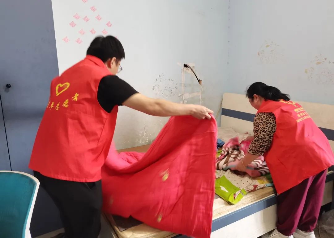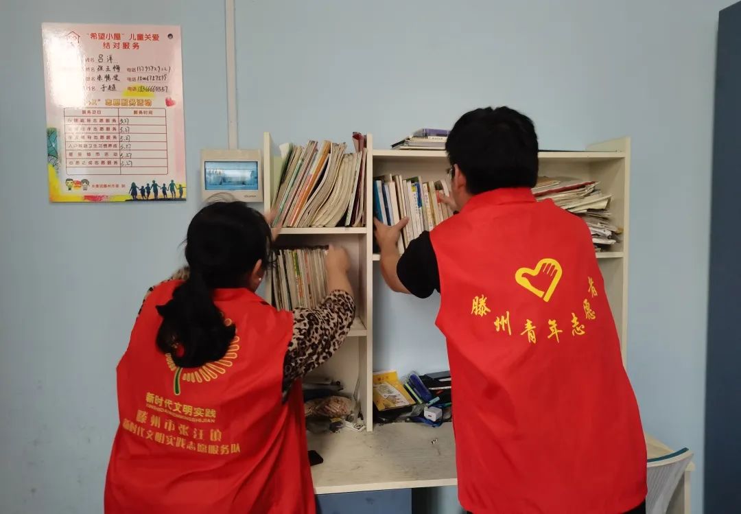 志愿者们为孩子们整理书架、床铺,保持房间的整洁,营造良好的学习环境,让孩子们有更多的时间和精力专注于学习。