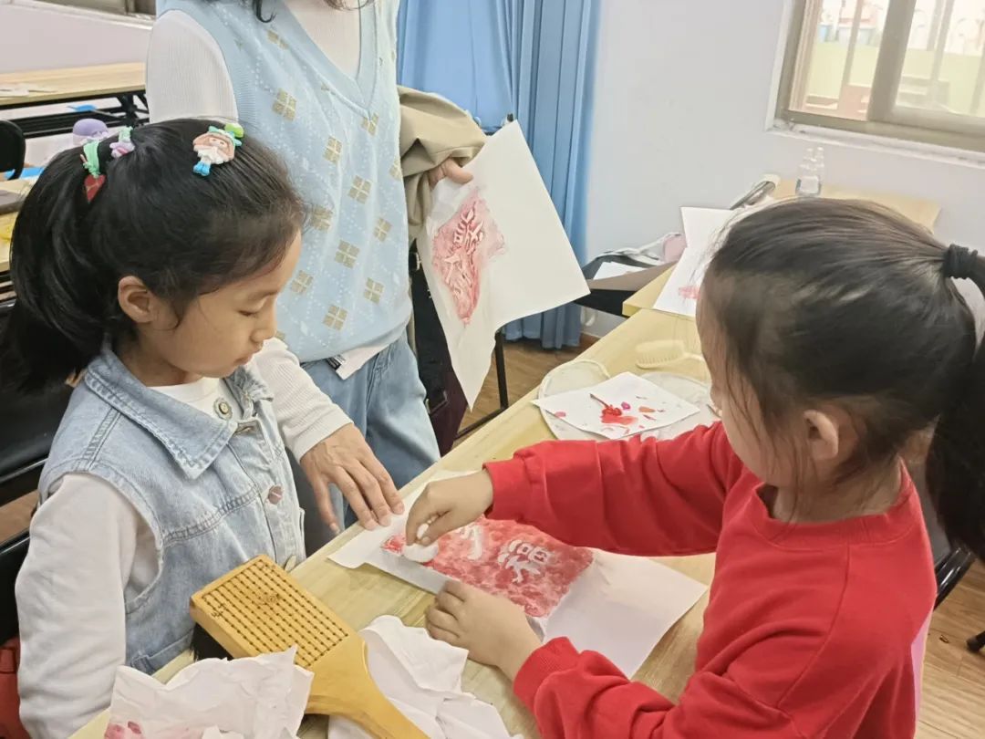 在青年志愿者的指导和帮助下,青少年们用红色墨汁和宣纸拓出核心价值观的内容,通过制作非遗拓片,做小小非遗传承人的同时,进一步感受社会主义核心价值观所蕴含的意义。