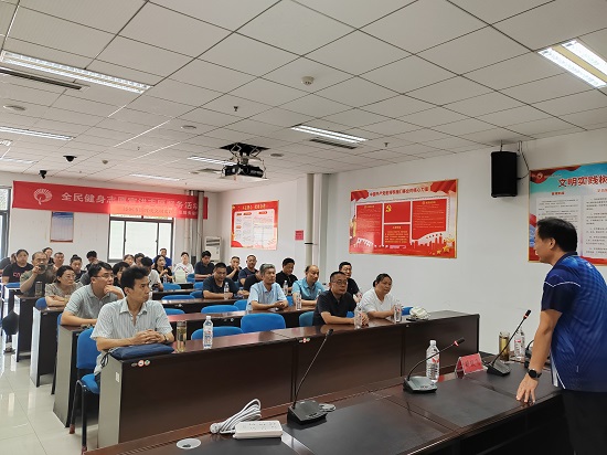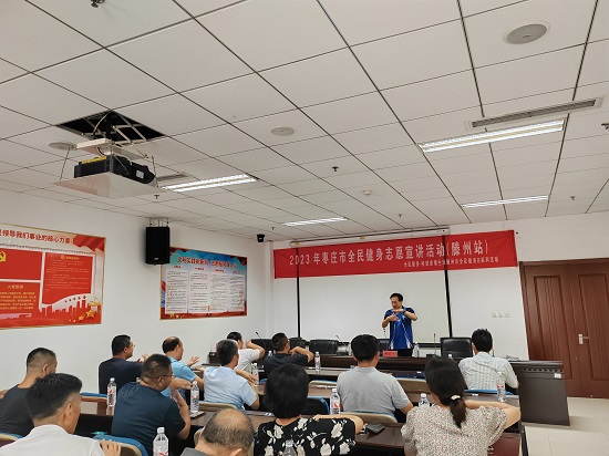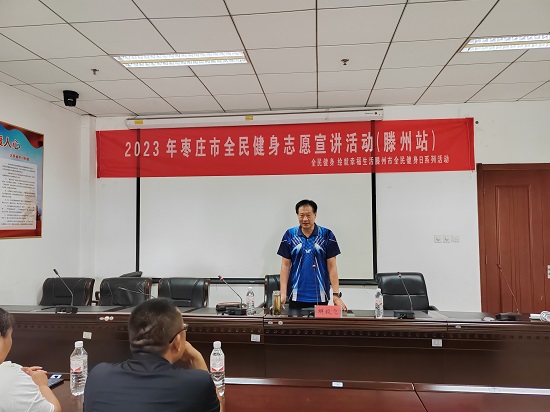 全员健身,绘就幸福生活。8月12日,2023年枣庄市全民健身志愿宣讲活动(滕州站)在市体育中心圆满举办,市体育事业发展中心、市竞技体育学校全体人员,各镇街文体站站长以及各协会代表参加。曲阜师范大学体育科学学院教授、硕士研究生导师、体育人文社会学“泰山学者”岗位学术骨干、体育科学学院体育管理系主任解毅飞教授倾情宣讲。