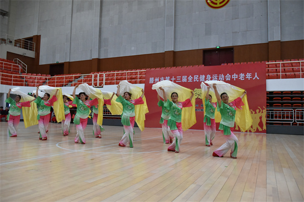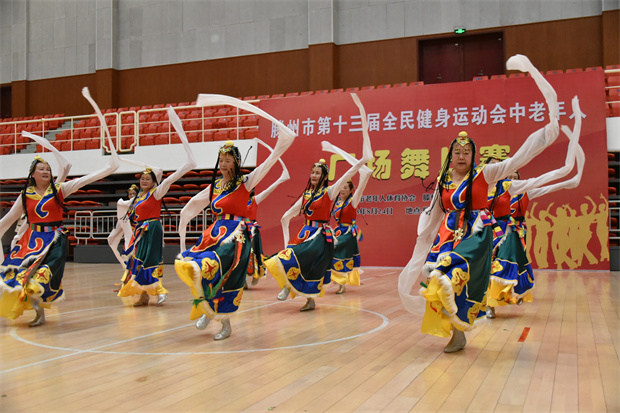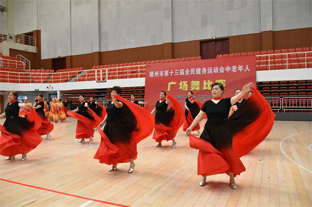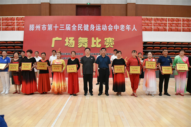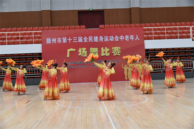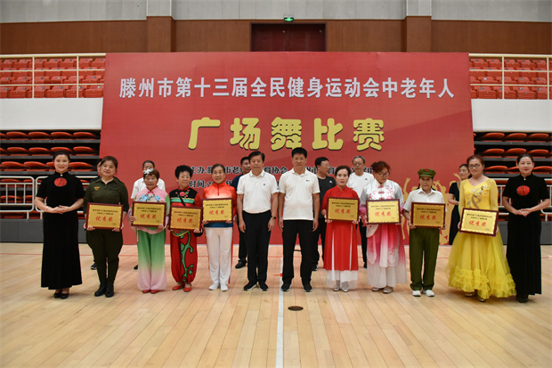 8月24日,滕州市第十三届全民健身运动会中老年人广场舞比赛在工人文化宫举行。此次比赛共有19个代表队、260余名中老年人参加。枣庄市老年体协副主席、滕州市老年体协主席宗大全,滕州市老年体协副主席朱绍琪、李培永、王玉亚、孔德军、李继太,副秘书长甄文出席闭幕式。