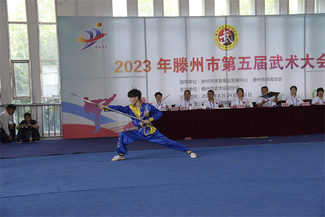 8月24-25日,滕州市第五届武术大会在市竞技体育学校武术馆隆重举办,赛事由市体育事业发展中心、市体育总会指导,市武术运动协会主办,市竞技体育学校协办。