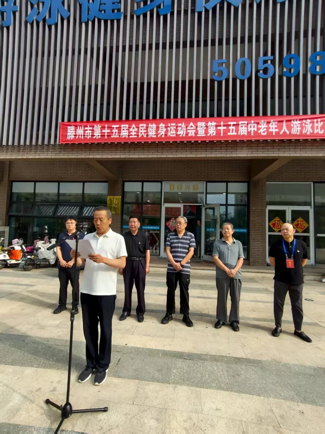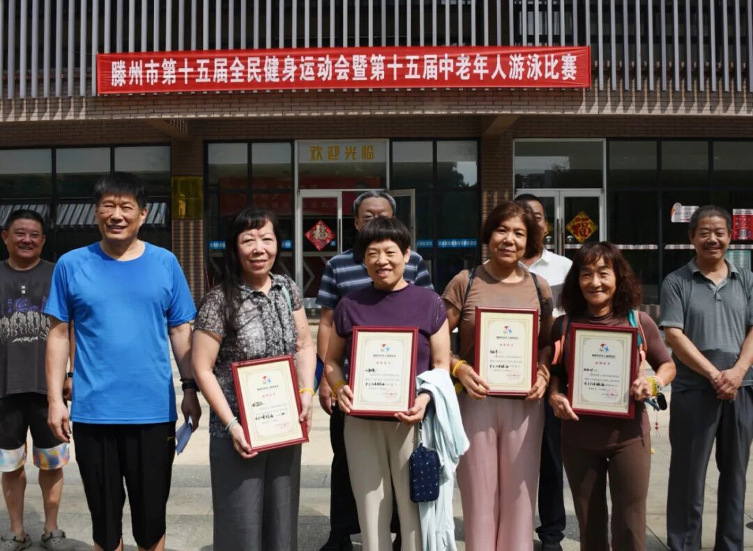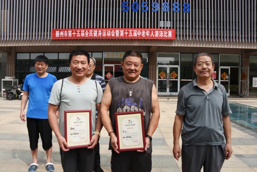 9月14日,滕州市第十五届全民健身运动会暨第十五届中老年人游泳比赛在人和蓝湾洺洋游泳健身俱乐部举行。此次比赛设男子组和女子组25米自由泳、蛙泳,50米自由泳、蛙泳八个项目,共有近百名中老年游泳爱好者参赛。枣庄市老年体协副主席、滕州市老年体协主席宗大全,副主席王玉亚、李继太,副秘书长甄文出席活动。