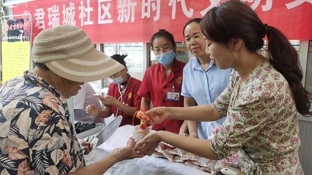 早上八点半,在工作人员和志愿者的精心组织下,活动有序开展。活动邀请滕州市北京同仁堂医务志愿者为居民免费测血糖、量血压以及把脉问诊等义诊服务。用通俗易懂的语言向居民进行病因讲解,提出治疗方案及建议。同时,还向居民发放了中药汤剂和香囊,进一步增强居民群众的获得感、幸福感和安全感。