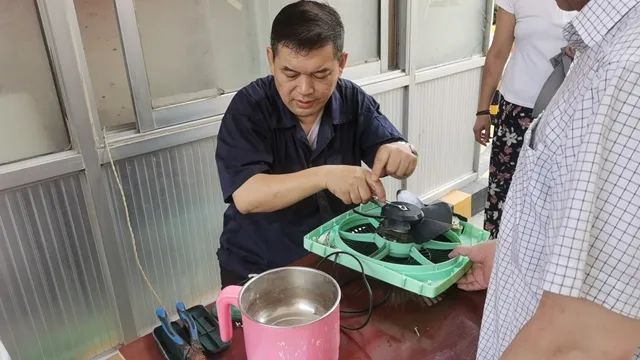 在义修区,博伟电器志愿者热心地帮助居民维修电水壶、电吹风等小家电,向居民们普及了小家电日常使用及保养方法,并宣传安全使用知识。