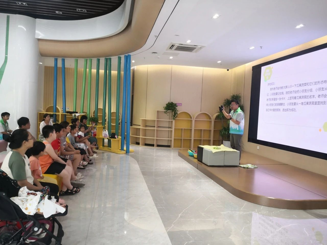 亲子游戏《摸秋》,社工老师讲解摸秋游戏的习俗传说,孩子们被故事中的事迹吸引,纷纷想体验摸秋的乐趣。