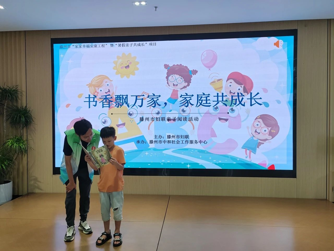 “书犹药也,善读之可以医愚”为了让孩子们在读书中快乐成长,感悟生活,思考人生,养成良好的阅读习惯,度过一个安全有意义的暑假。滕州市妇联联合中和社工在市妇女儿童活动中心举办“书香飘万家,家庭共成长”亲子阅读活动。