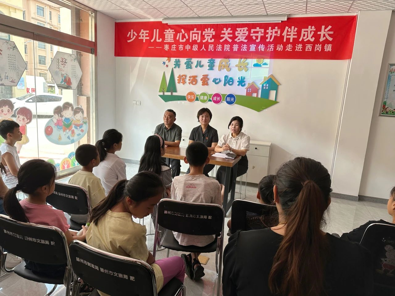 8月16日,西岗镇组织妇联、新时代文明实践等部门携手枣庄市中级人民法院,开展了“少年儿童心向党 关爱守护伴成长”2023年暑期儿童关爱服务暨普法宣传活动。