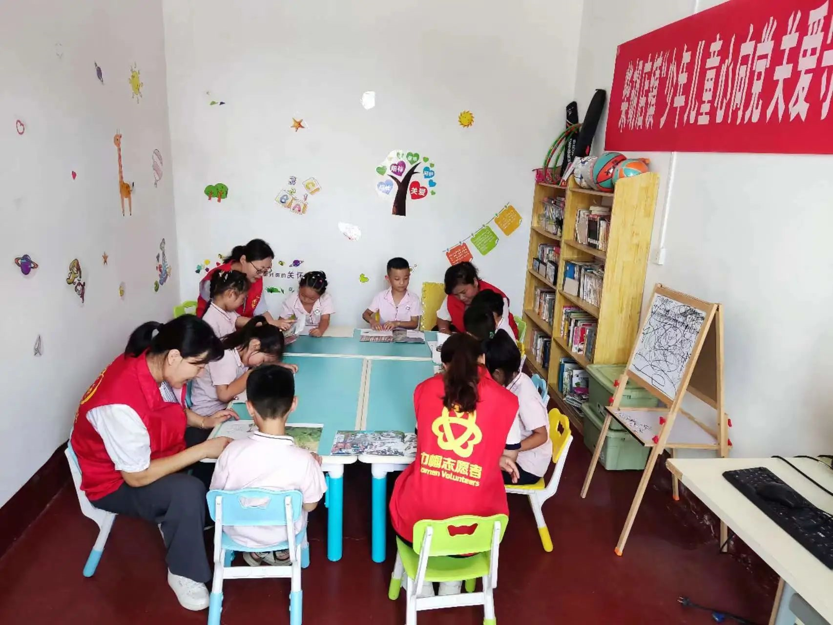 在高桥村留守儿童快乐成长站,镇妇联巾帼志愿者、“店记您”志愿者带着孩子们读书、唱歌、绘画、做游戏......在欢快的气氛中,孩子们的脸上洋溢着幸福的笑容。
