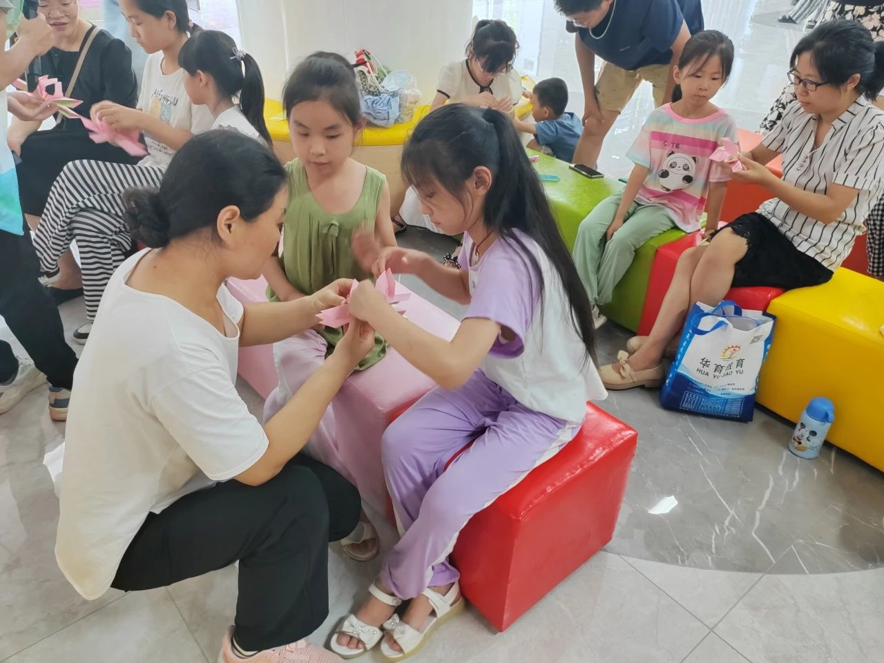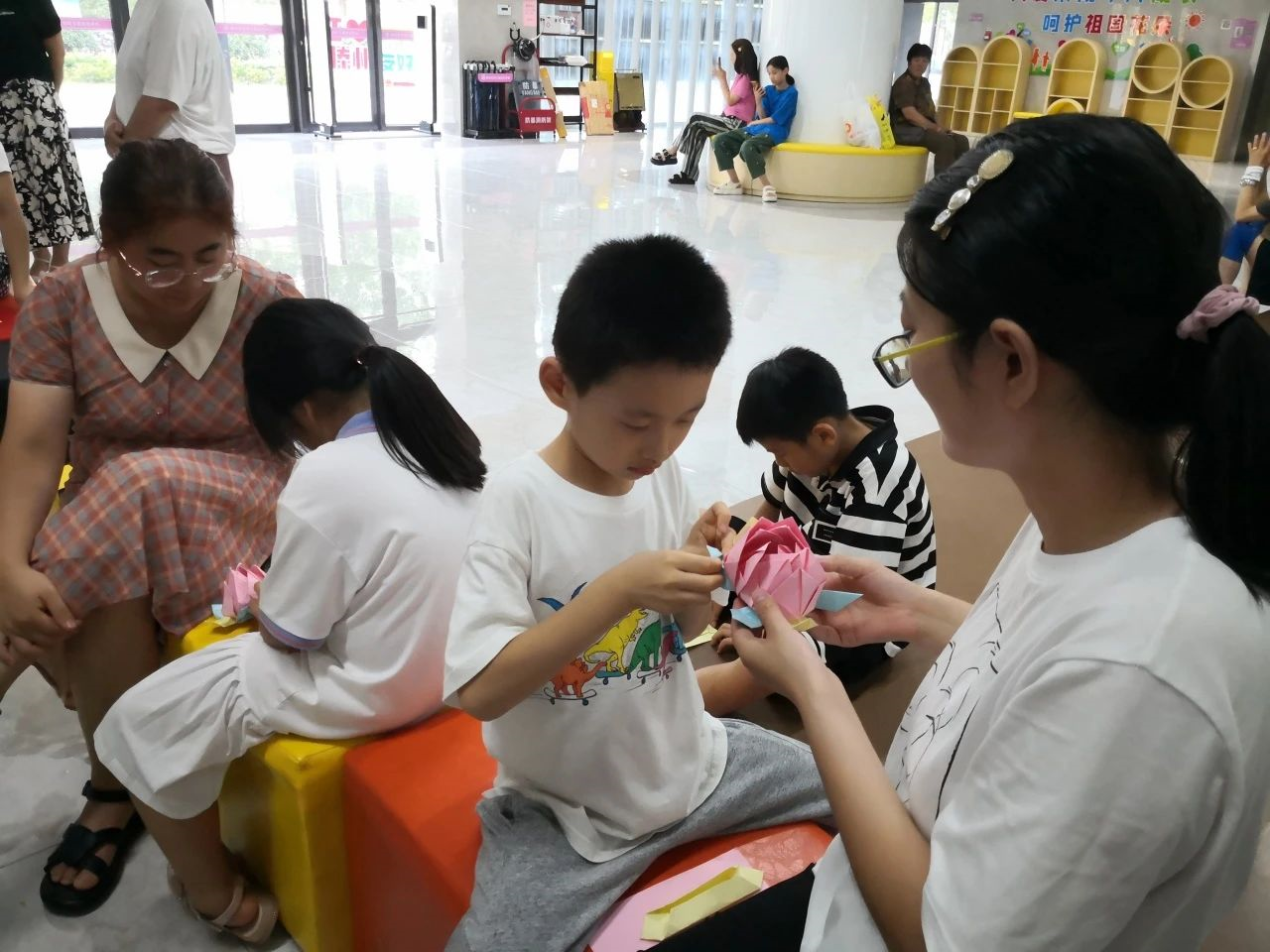 活动现场,孩子们的创作热情高涨,充分发挥自己的想象力,将自己见到过的荷花用折纸还原出来,折君子之花,行君子之事,传承清白、高尚、谦虚的美德。