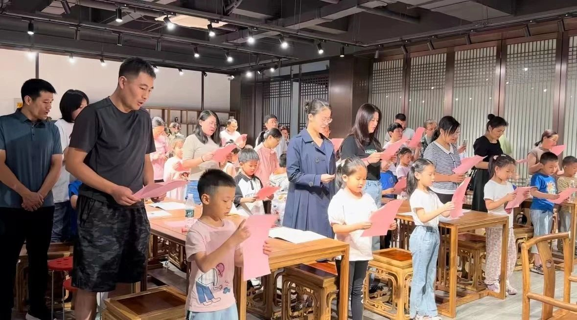 活动中,在工作人员的指导下,即将入学的一年级新生由父母端正衣冠、老师点朱启智、诵读《弟子规》,学习“人”字并描红书写、击鼓立志、向父母师长鞠躬感恩、教师回赠礼物等环节,让小朋友们学礼尚礼,感受“仁者爱人”的儒家文化,并立志长大要做有理想、有德性、有文化的人。